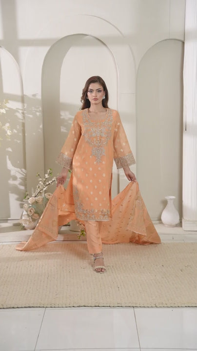 3PC Jacquard Embroidered Suit (EUAL3PEF235)