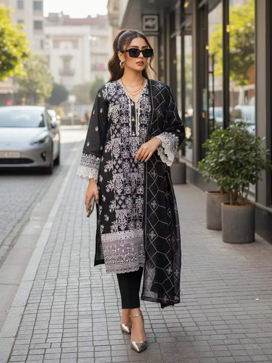 3PC Stitched Cambric Embroidered Suit (PML3PBC289)