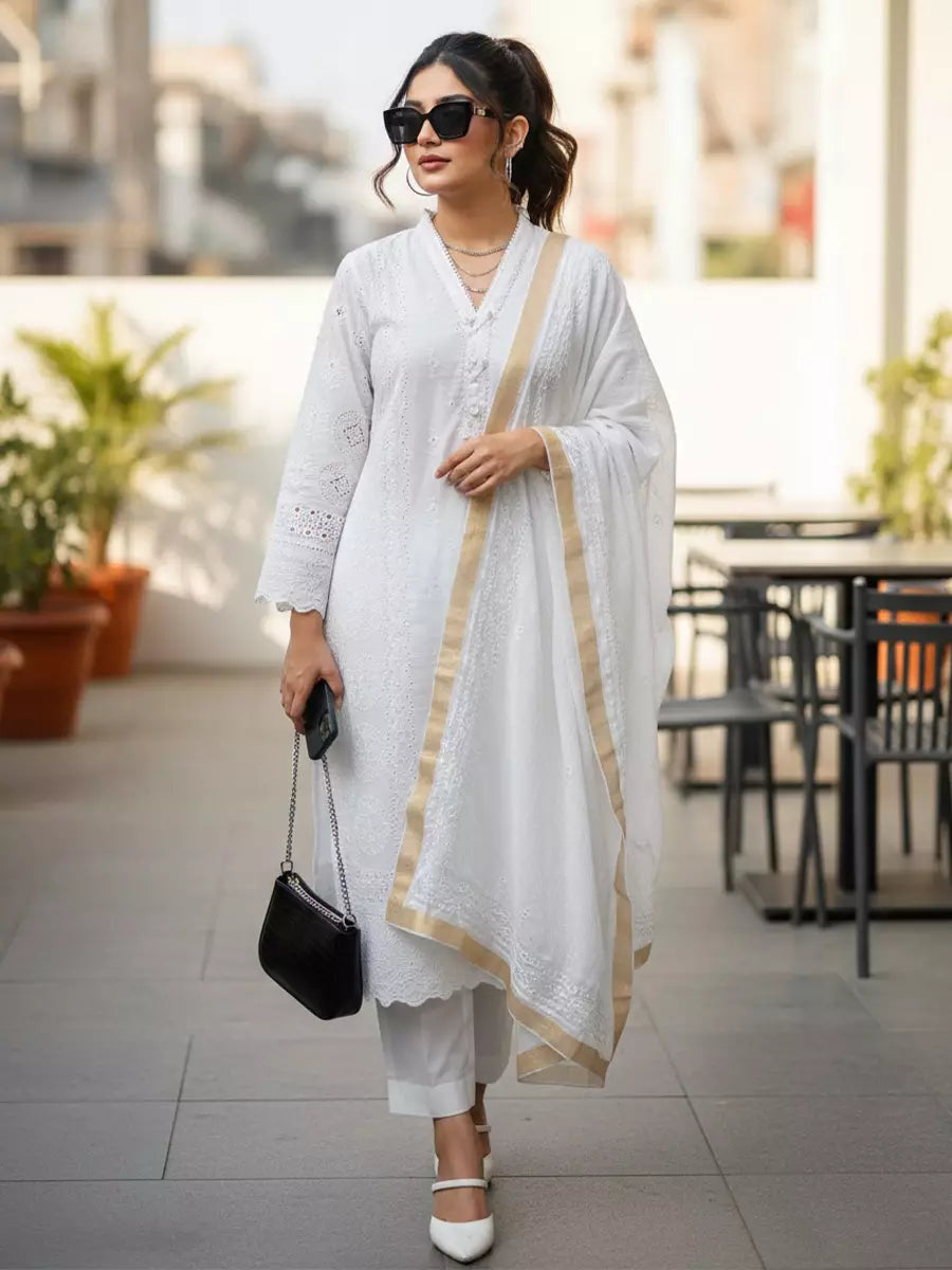 • Dupatta Details: Embroidered munar dupatta