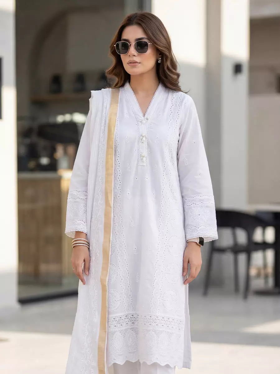 3PC Stitched Cambric Embroidered Suit (PML3PBC293)