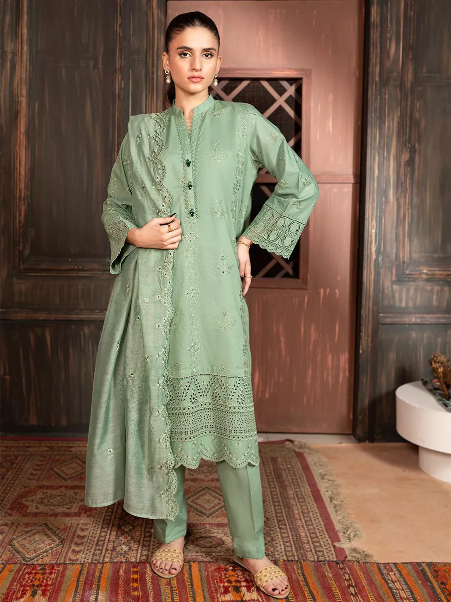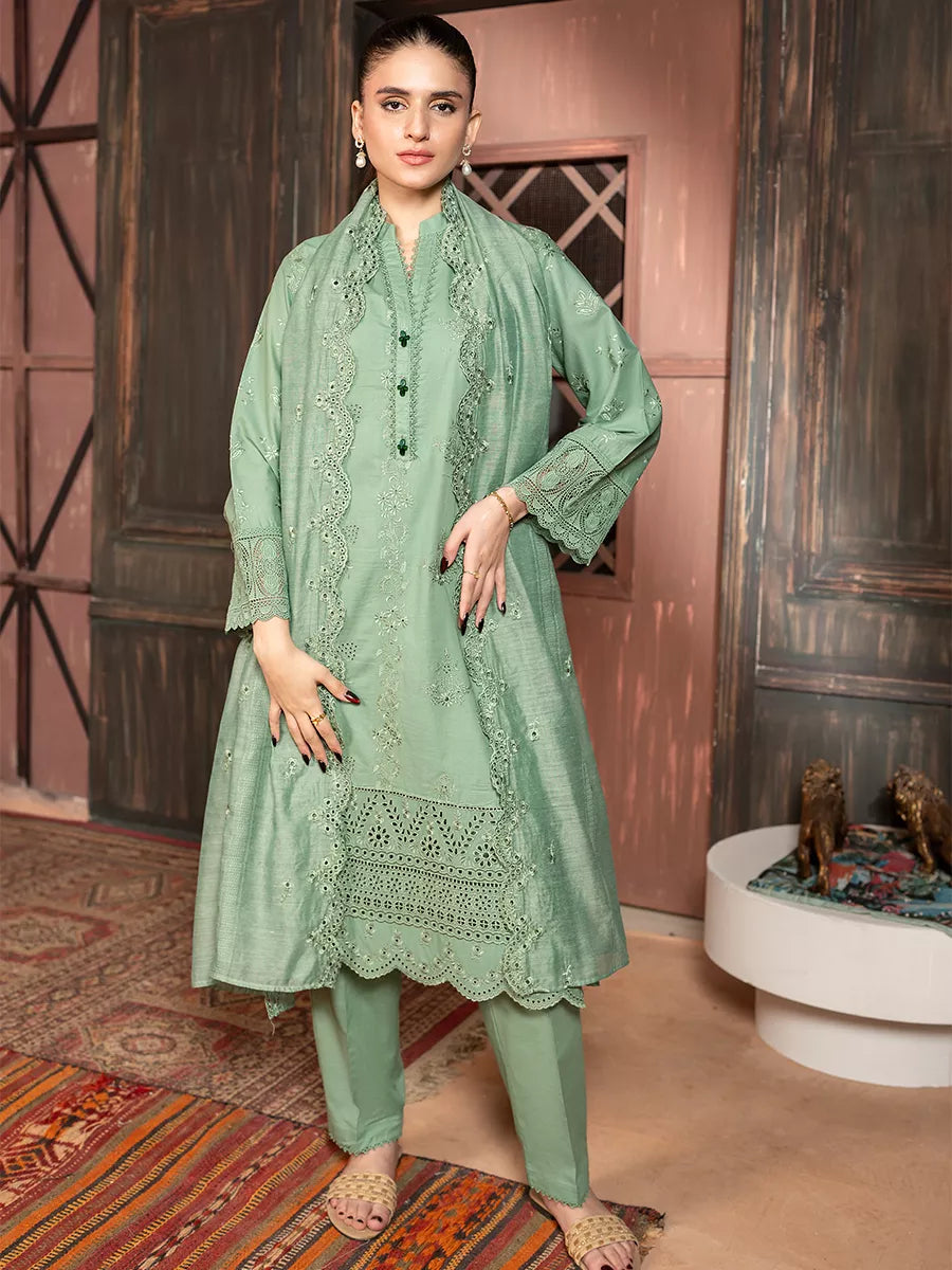 3PC Stitched Cambric Embroidered Suit (PML3PBC296)