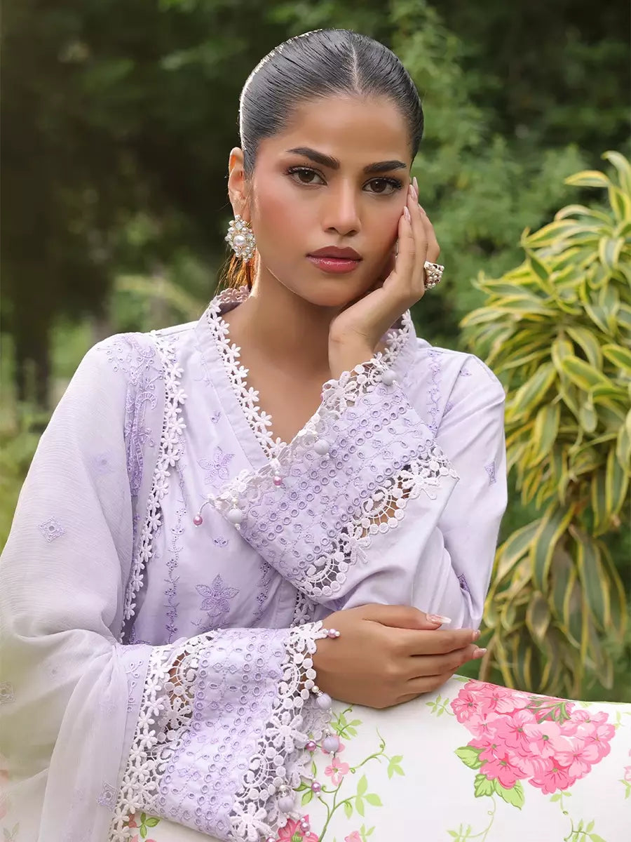 3PC STITCHED CHIKANKARI CAMBRIC EMBROIDERED SUIT (CK005)