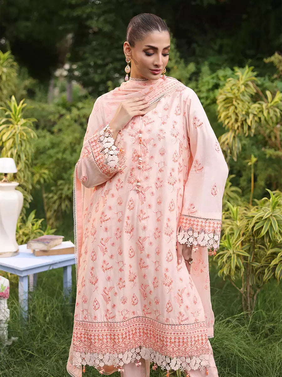 3PC STITCHED CHIKANKARI CAMBRIC EMBROIDERED SUIT (CK007)
