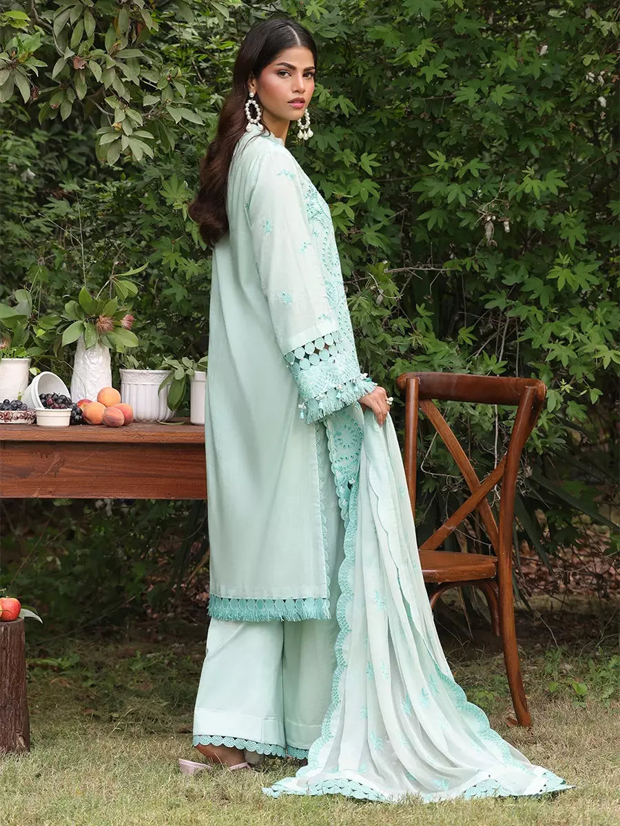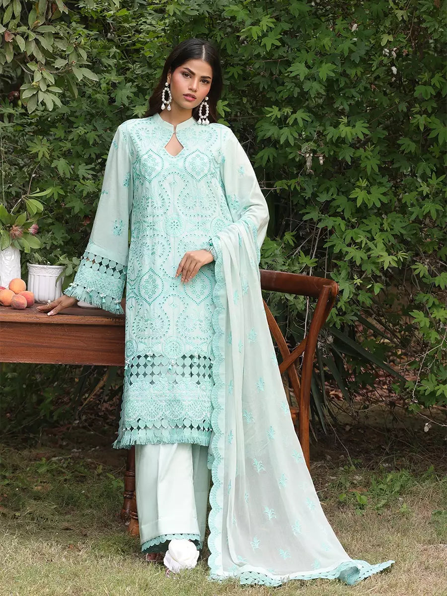 3PC STITCHED CHIKANKARI CAMBRIC EMBROIDERED SUIT