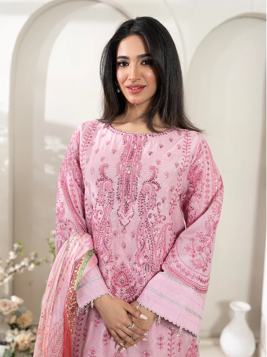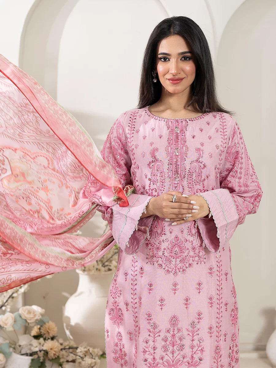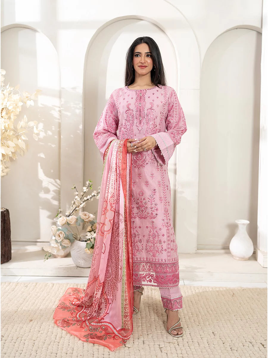 3PC Stitched Cotton Net Embroidered Suit (SPL3PEF125)