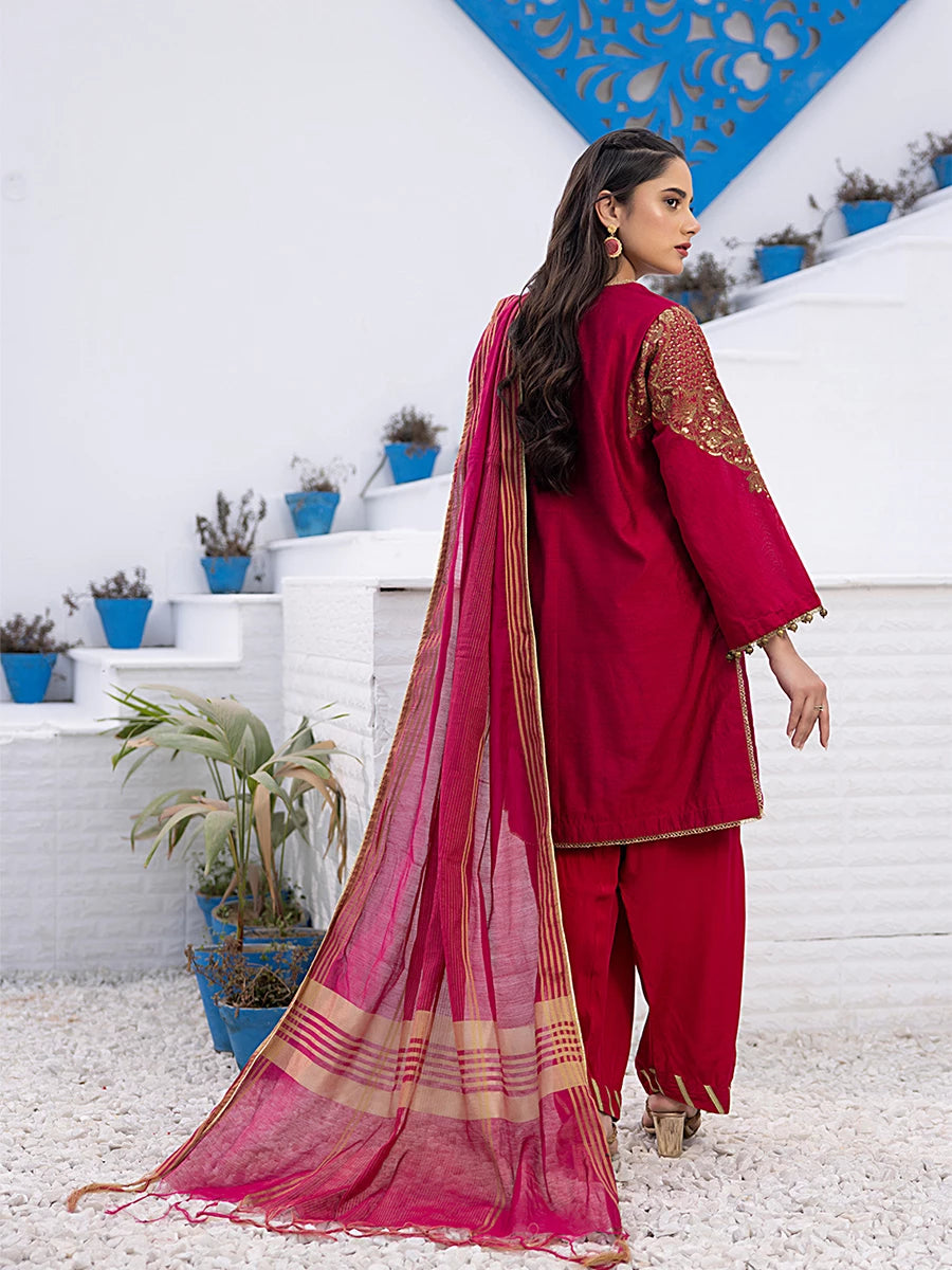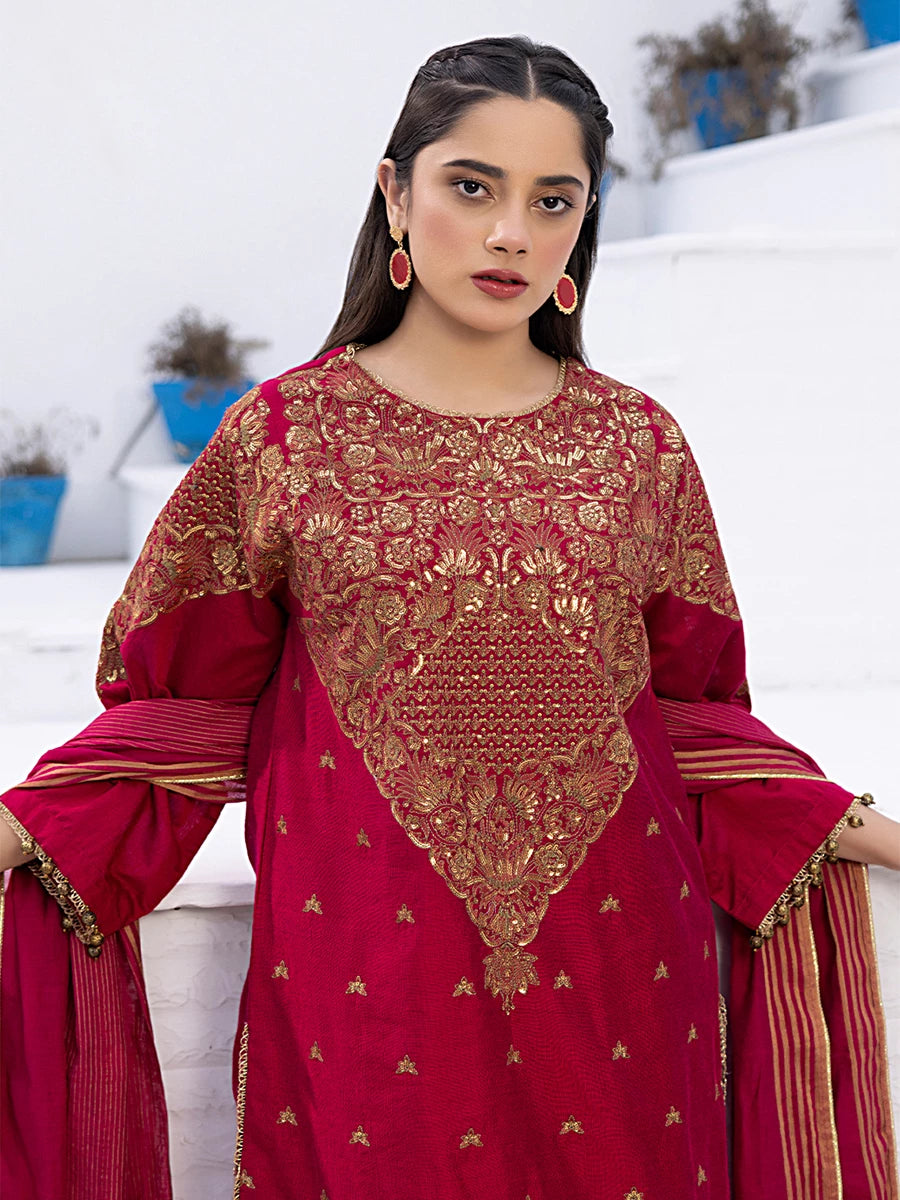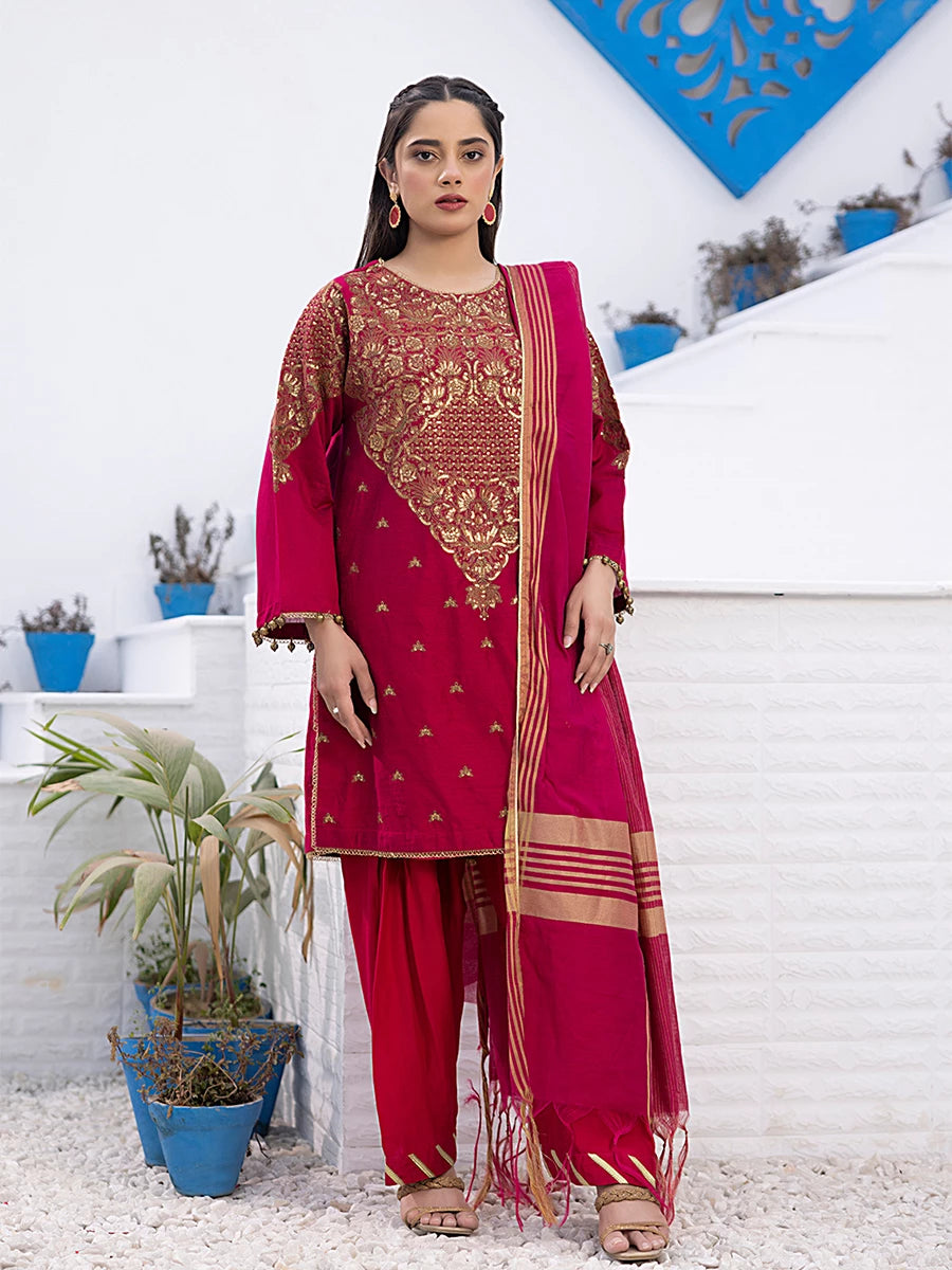 3Pc Stitched Cotton Net Embroidered Suit