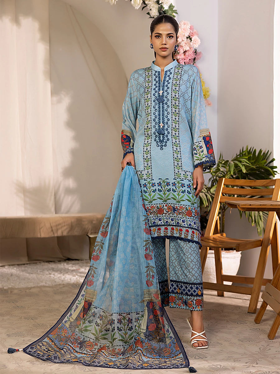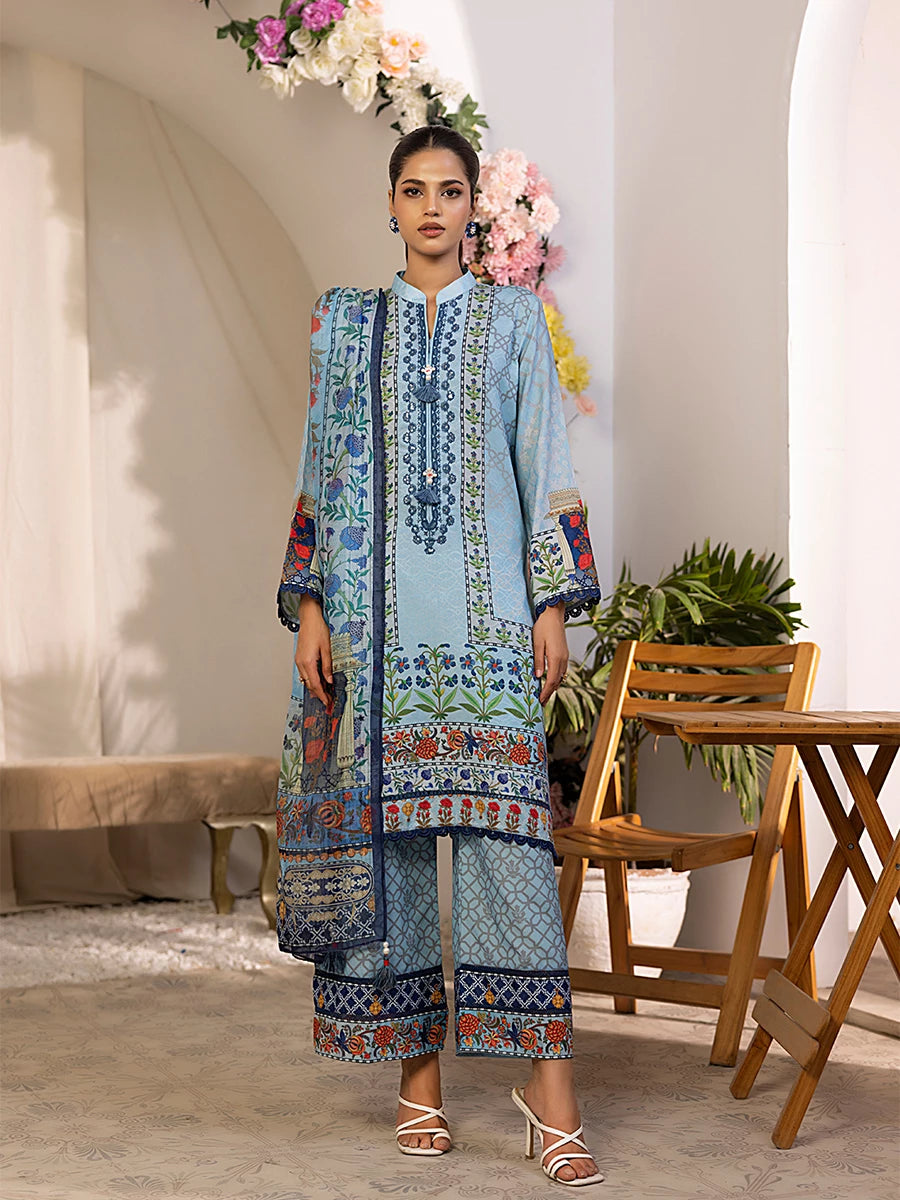 3PC stitched Poly Viscose Embroidered Suit (SPL3PEC044)
