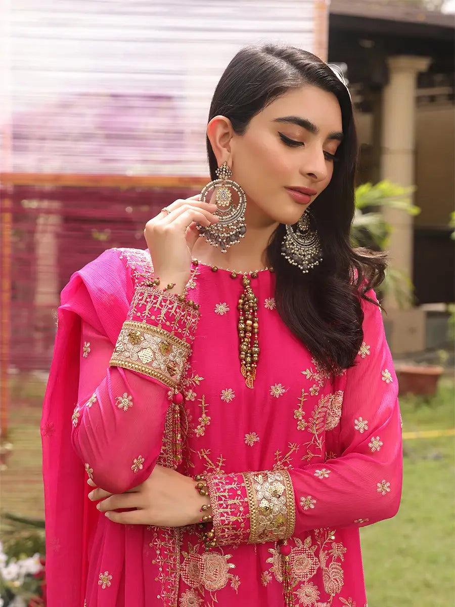 3PC STITCHED FESTIVE CHIFFON EMBROIDERED SUIT