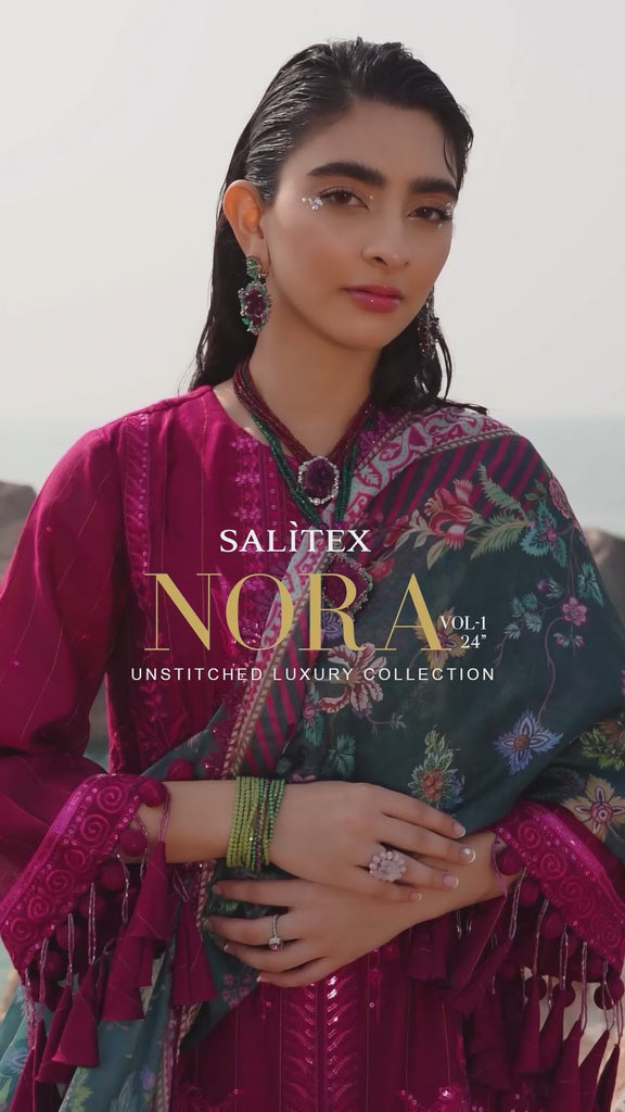 Make a statement in this magenta beauty from SALITEX’s NORA Collection. Crafted with exquisite embroidery and luxe fabric, and styled with a printed dupatta, it's designed for graceful celebrations and unforgettable moments.