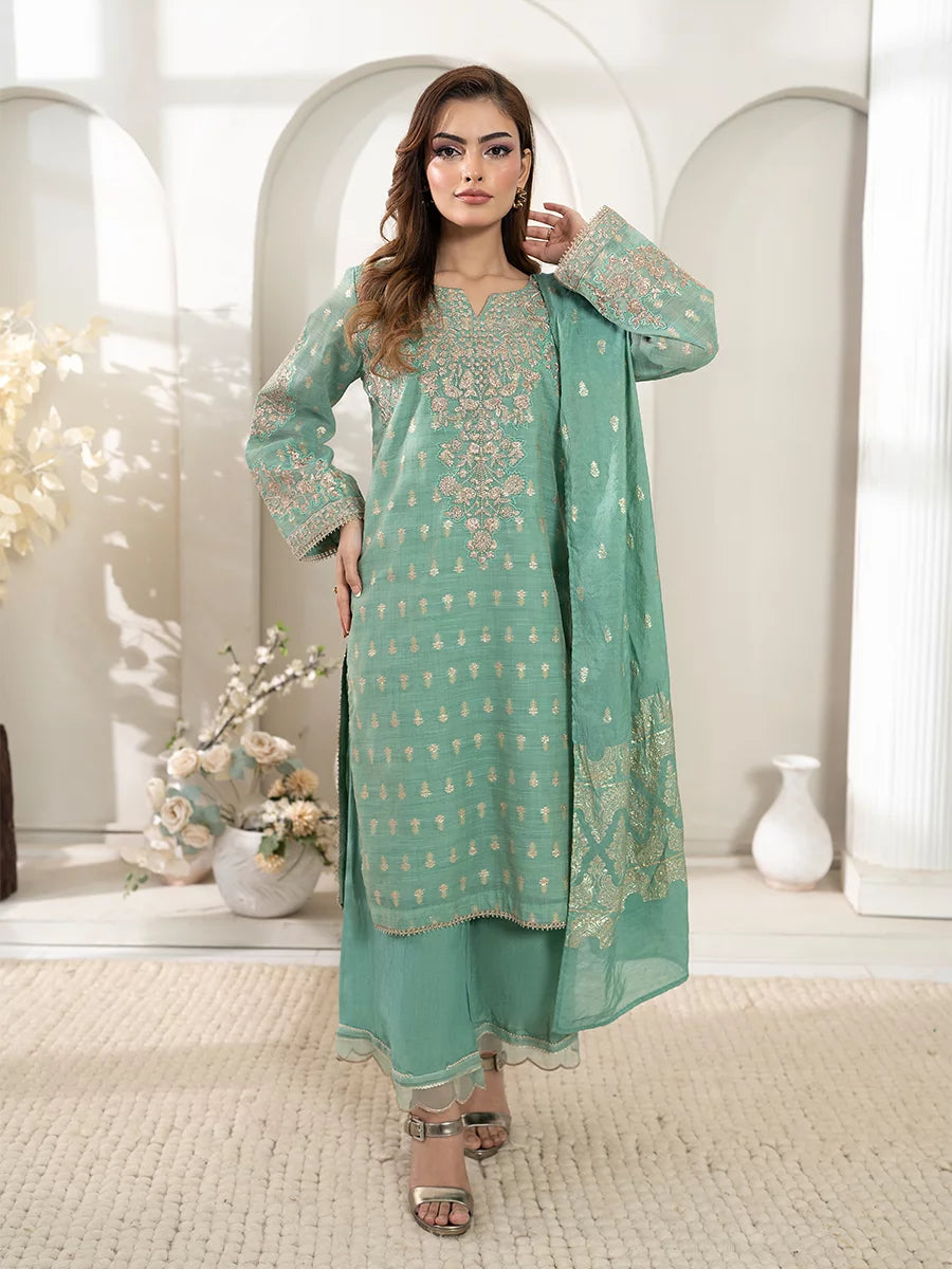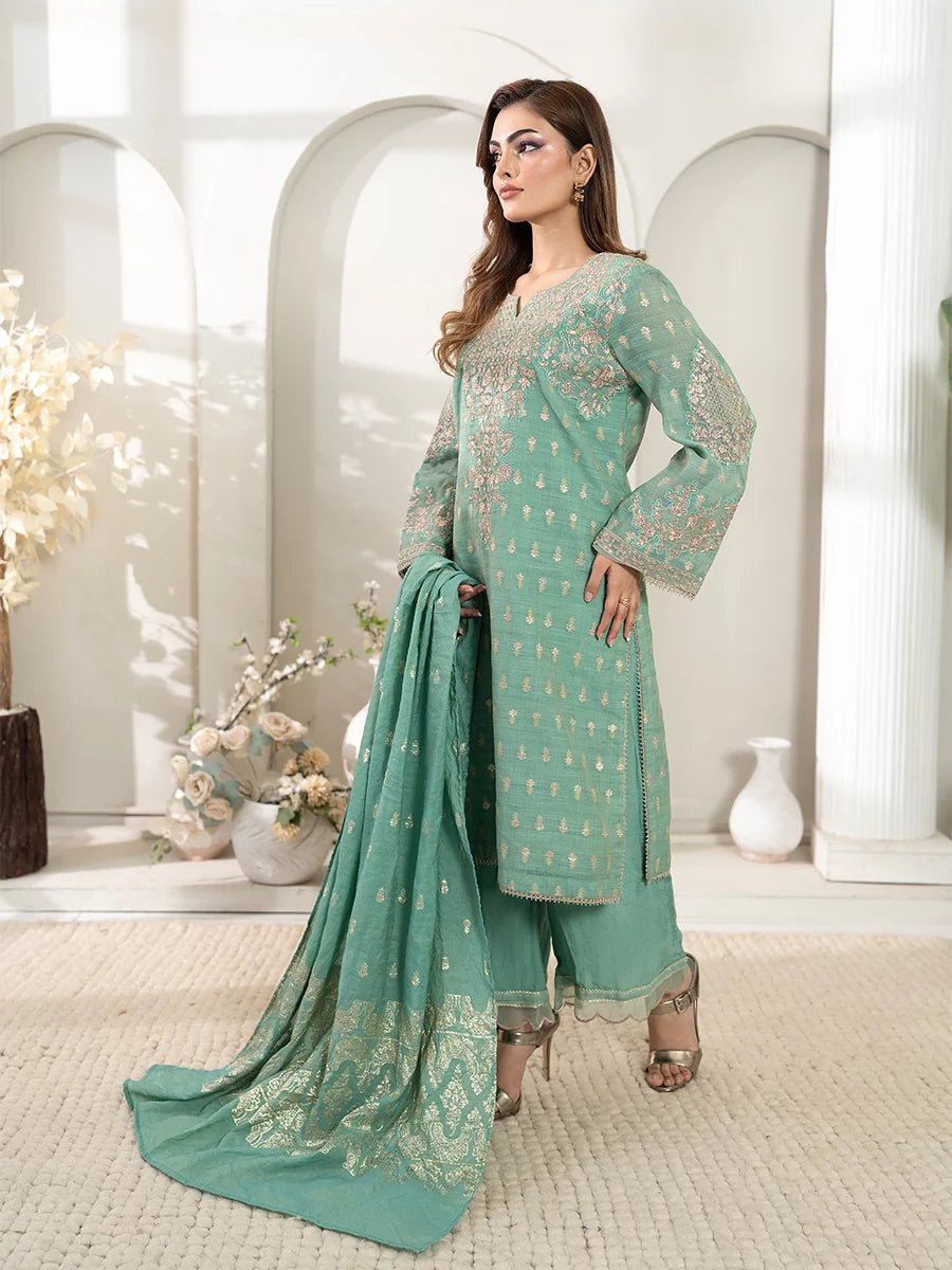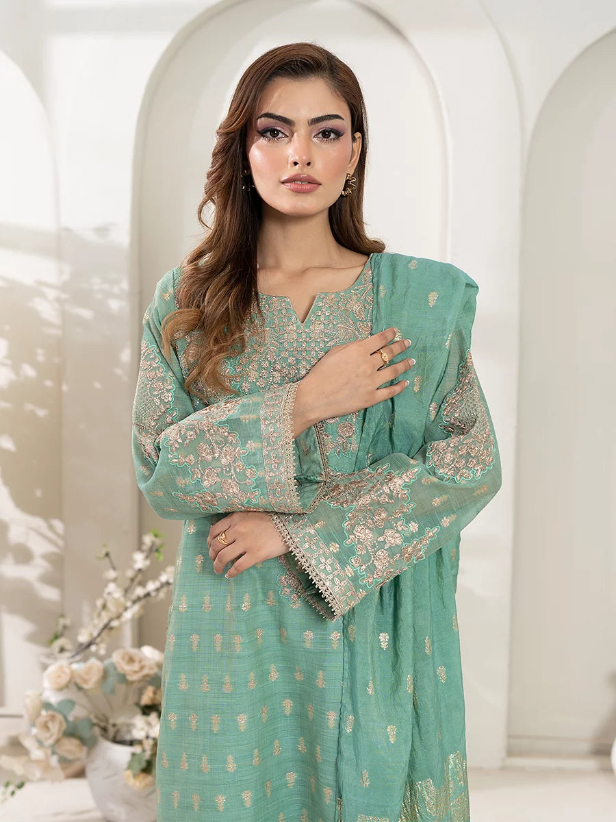 3PC Stitched Jacquard Embroidered Suit (EUAL3PEF232)