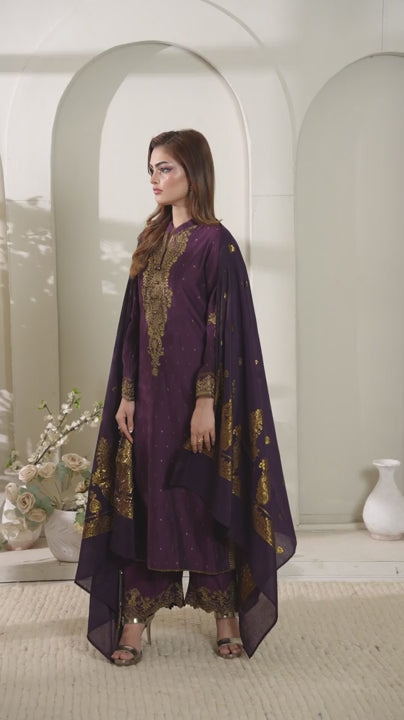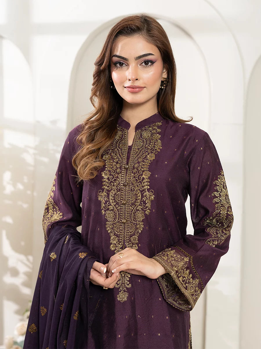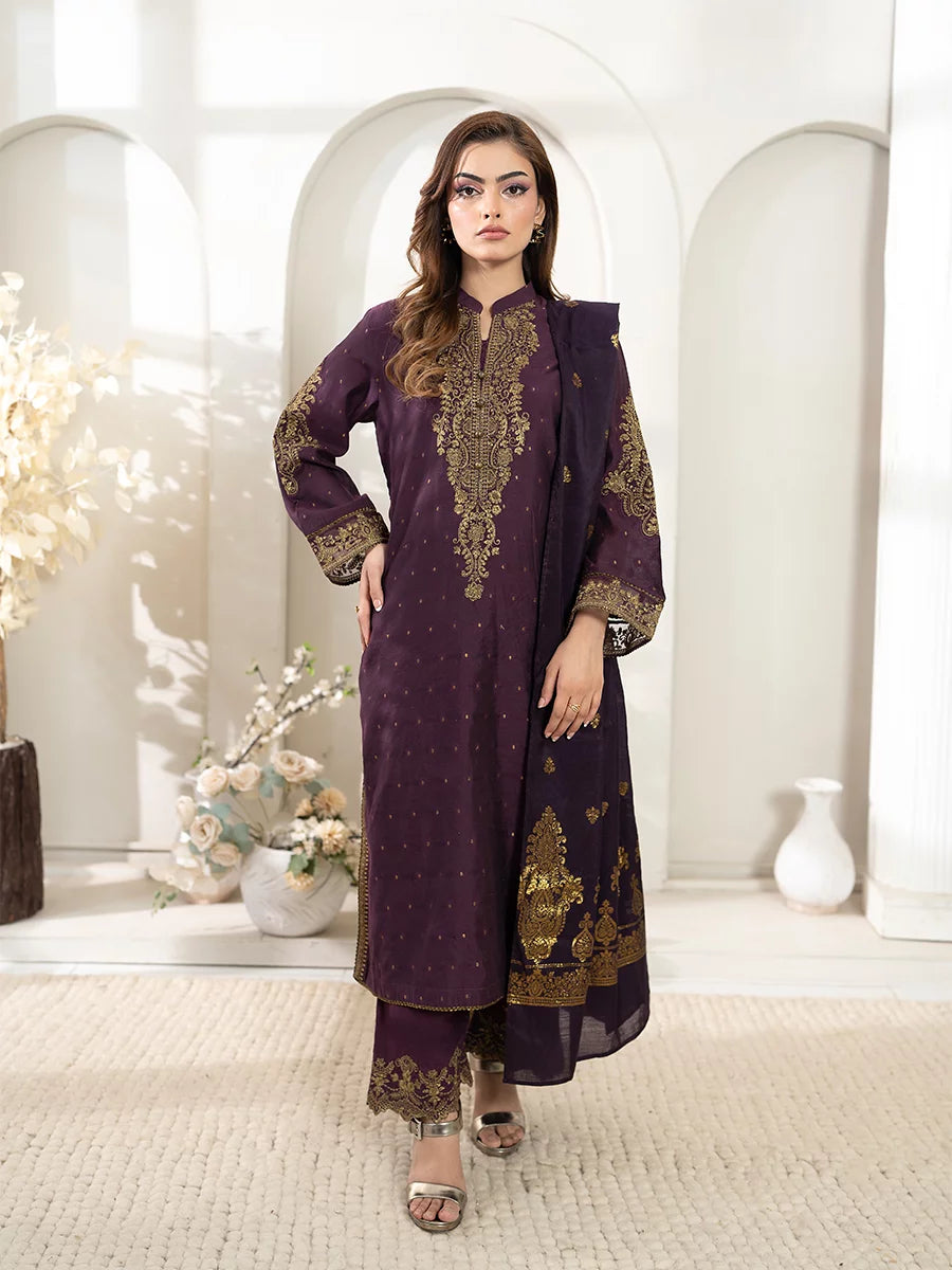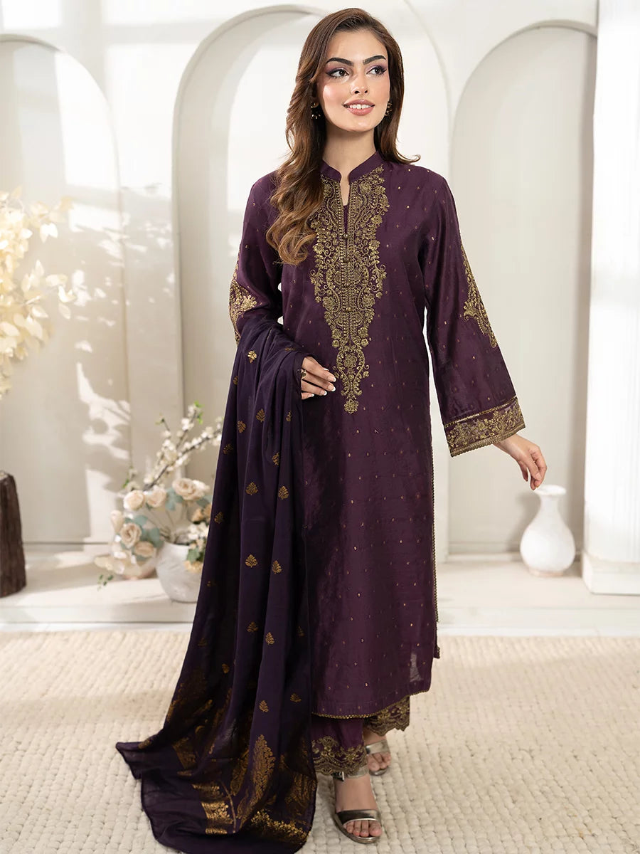 3PC Stitched Jacquard Embroidered Suit (EUAL3PEF234)
