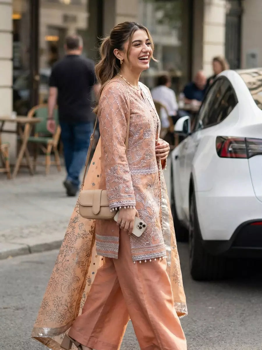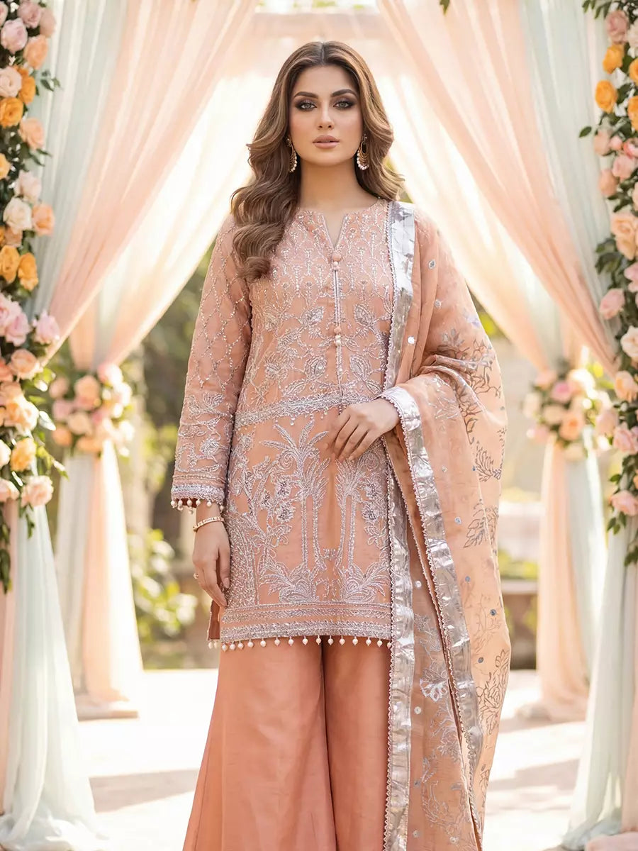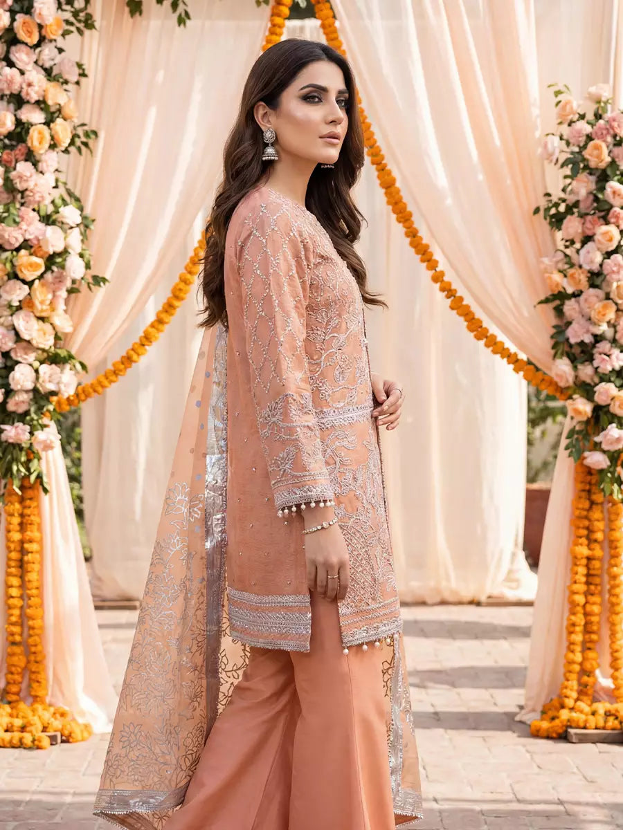 3PC Stitched Khaddi Net Embroidered Suit (WRS3LA24SA02)