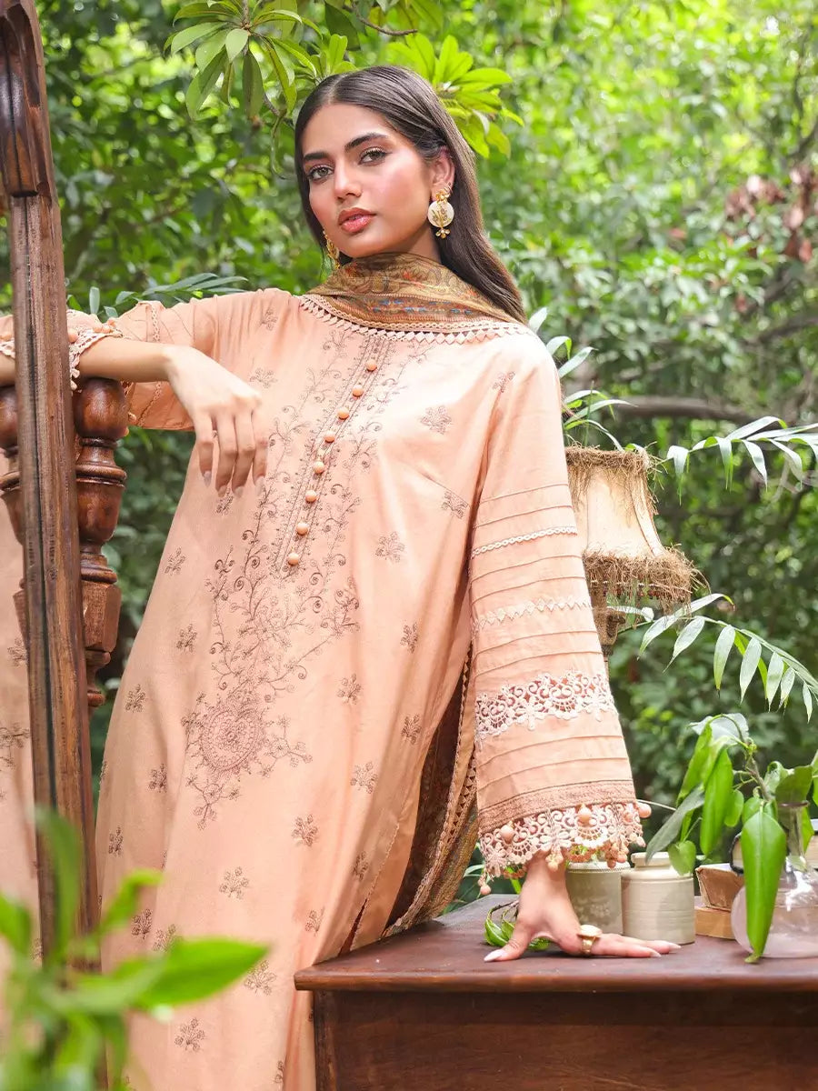 3PC STITCHED LUXURY RICE SLUB EMBROIDERED SUIT
