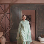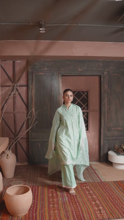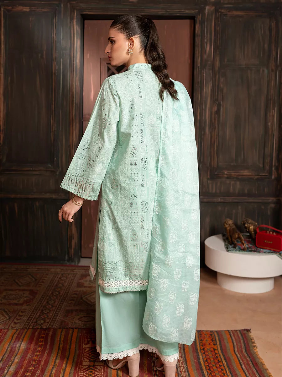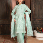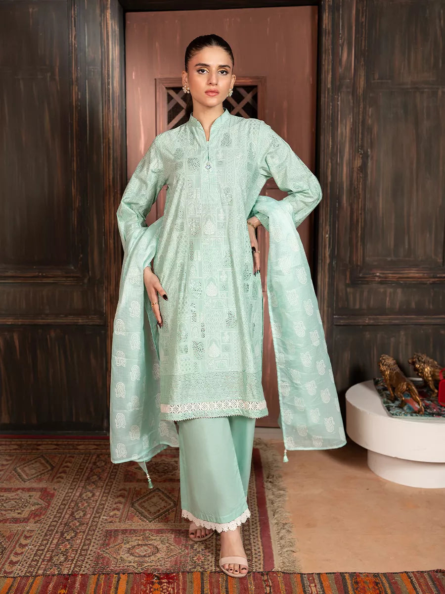 3pc stitched mukesh printed cambric shirt and dupatta with cambric dyed trouser.