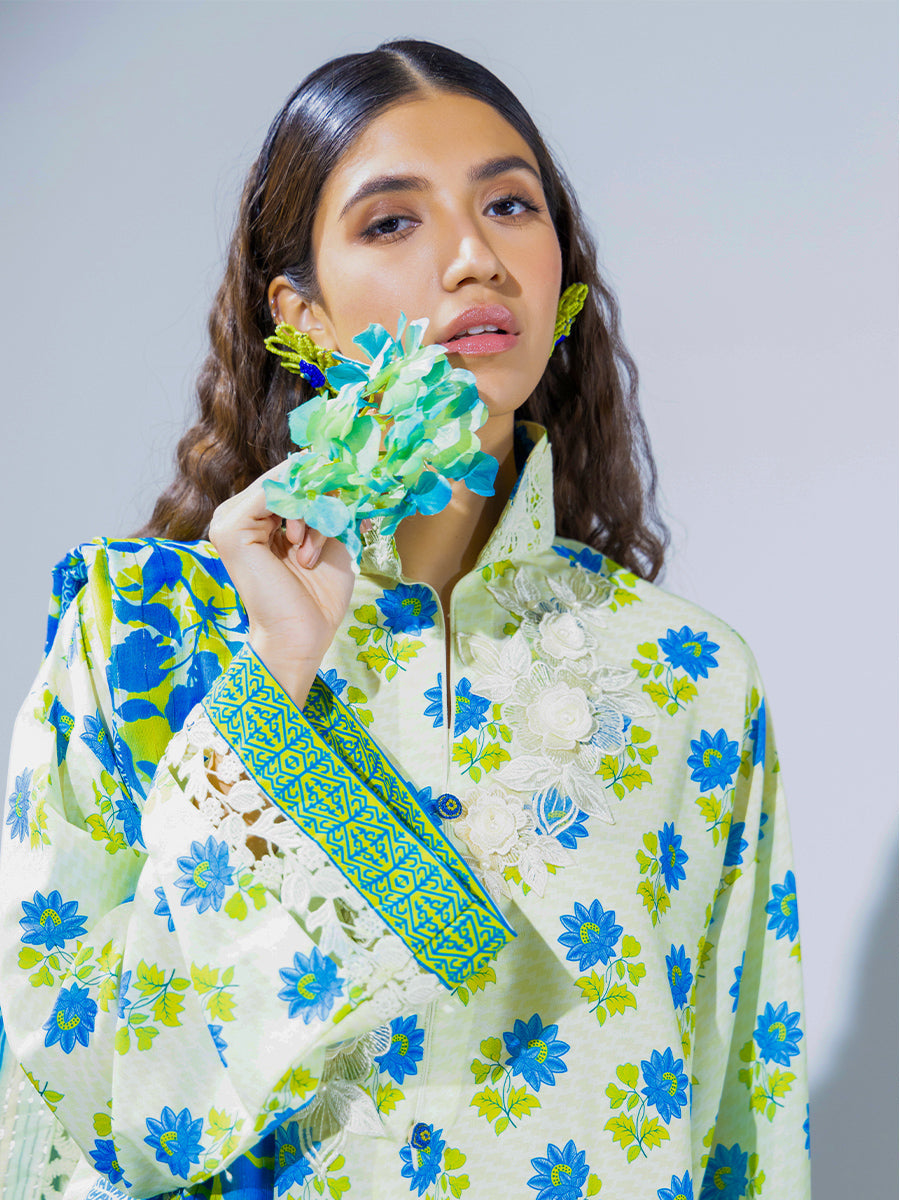 3PC Stitched Printed Lawn Silk Suit (SI14)
