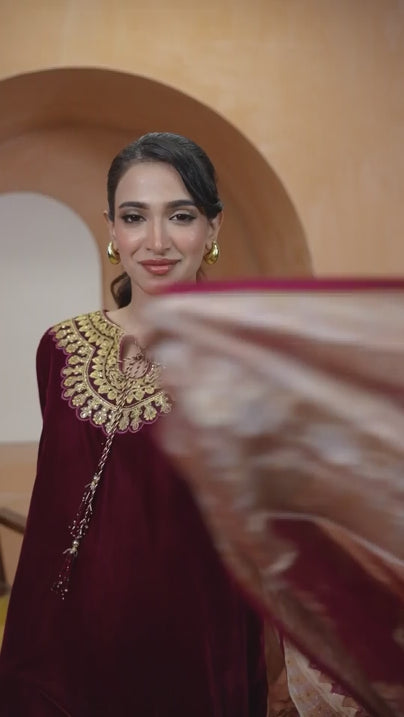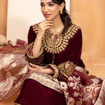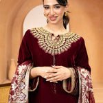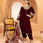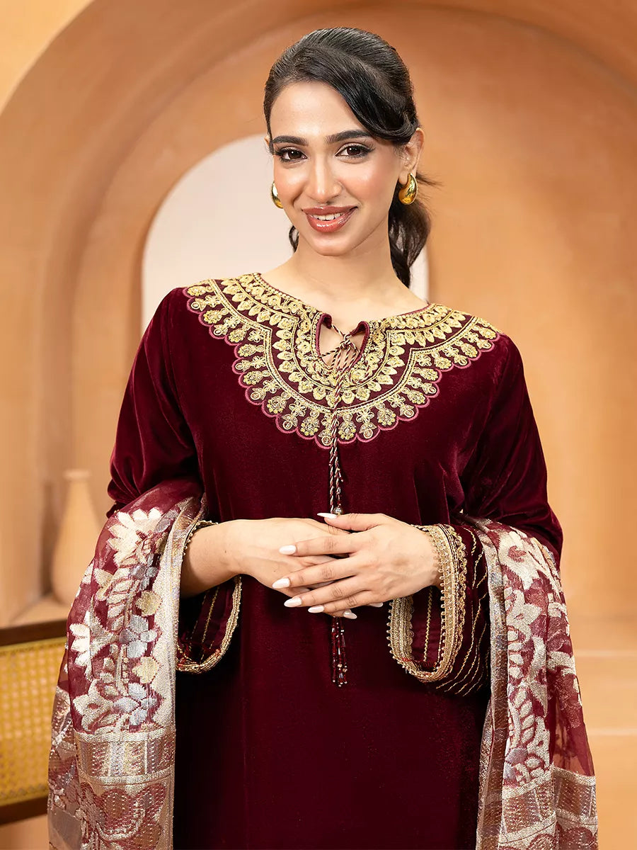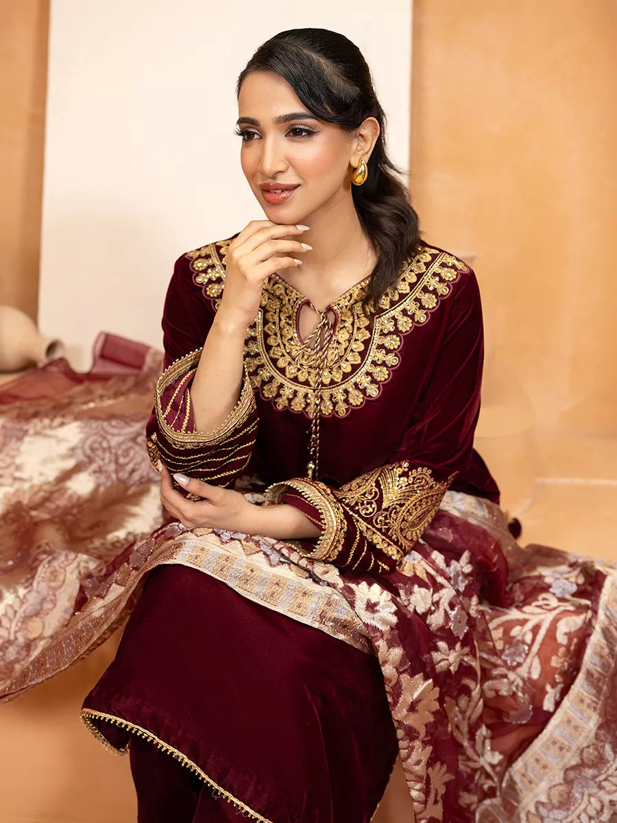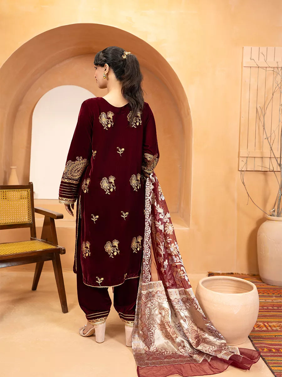 3PC Stitched Velvet Embroidered Suit (WP7L3PEF481)