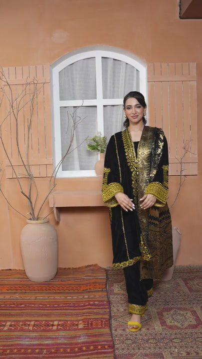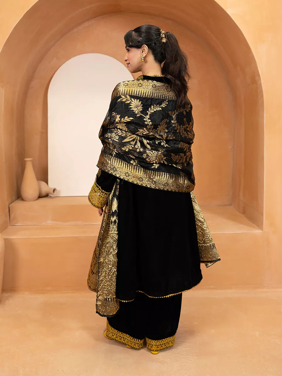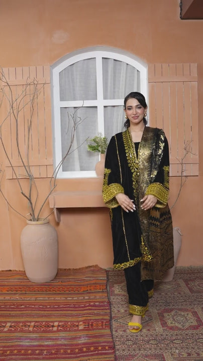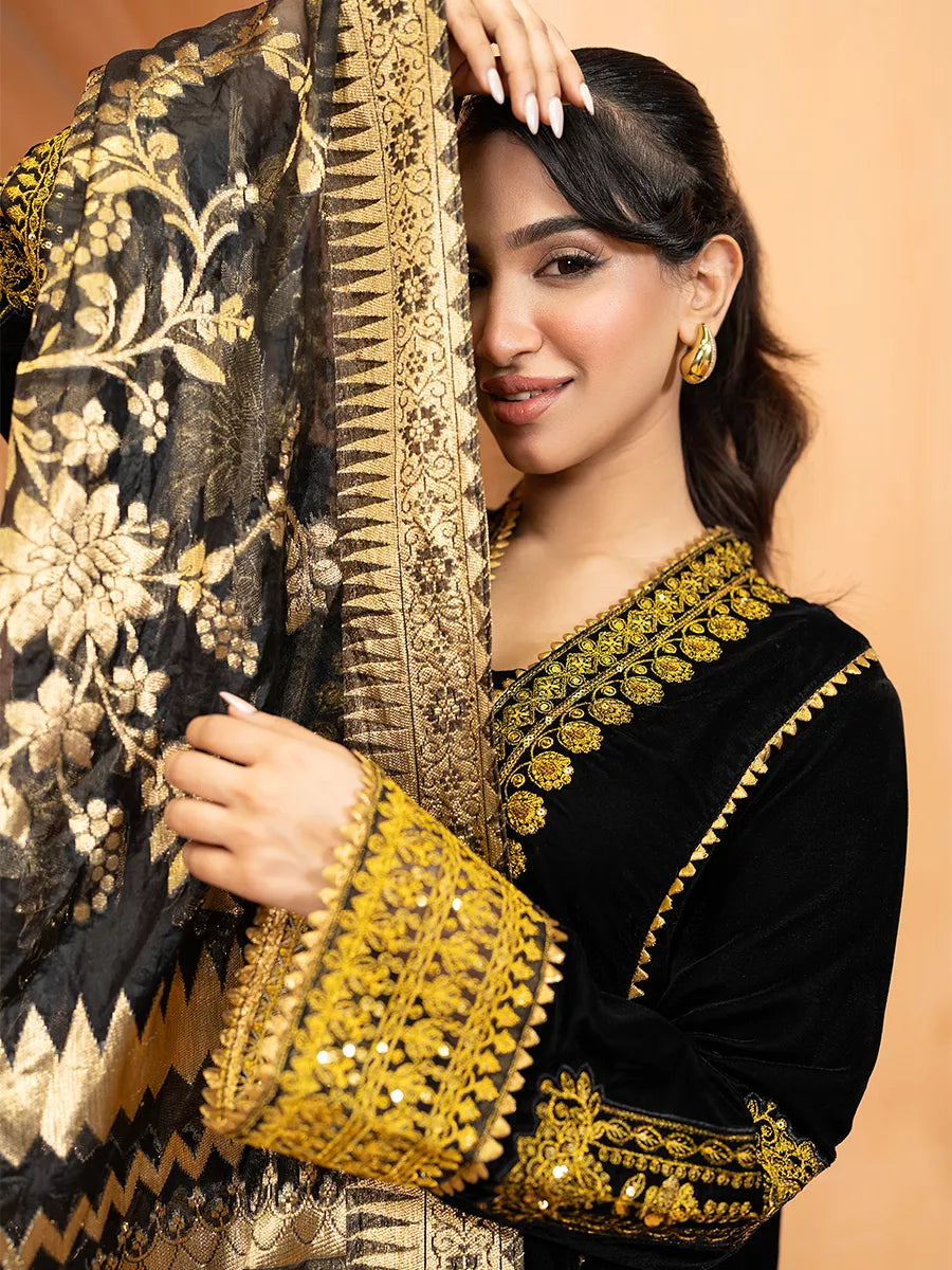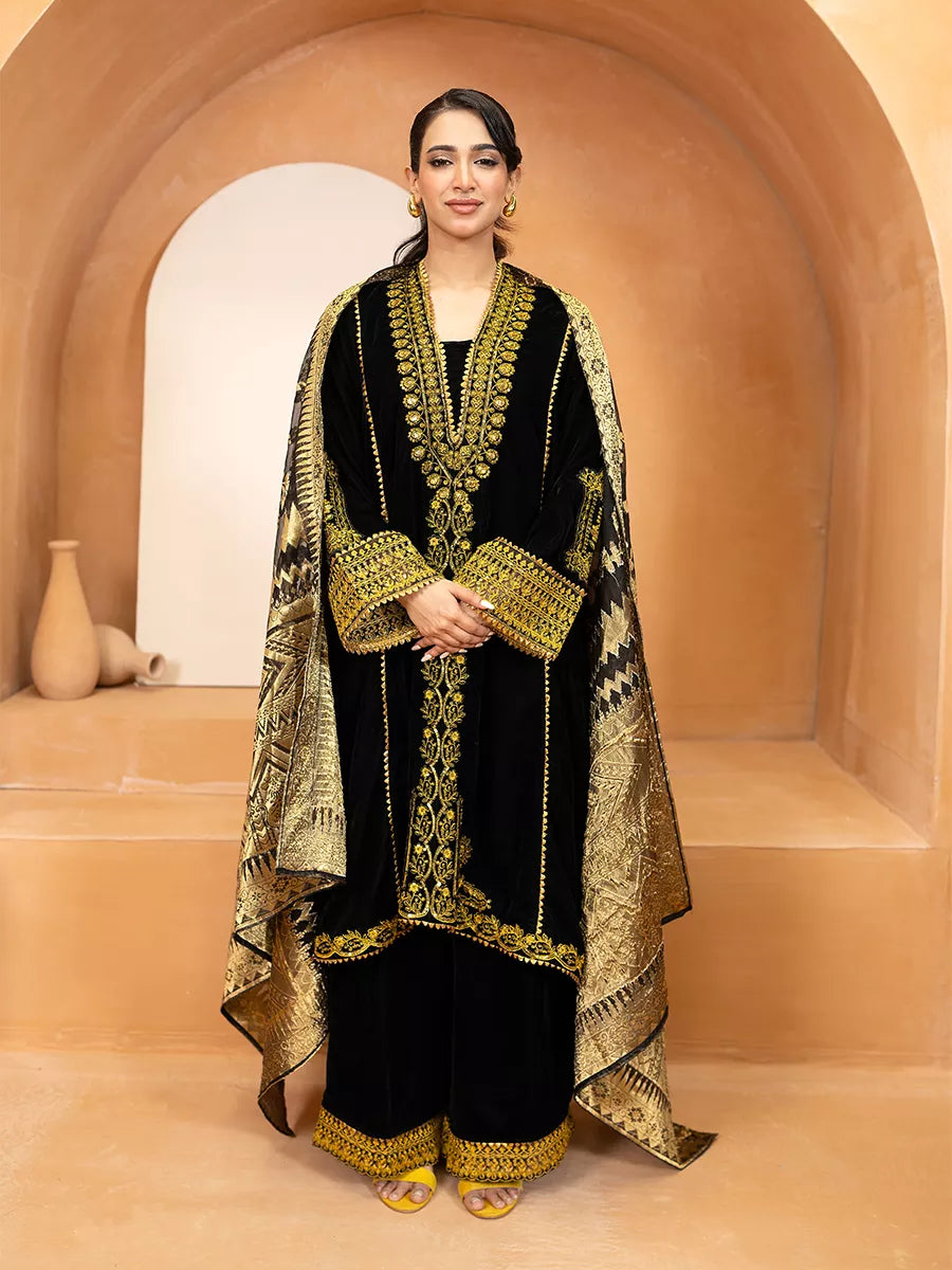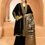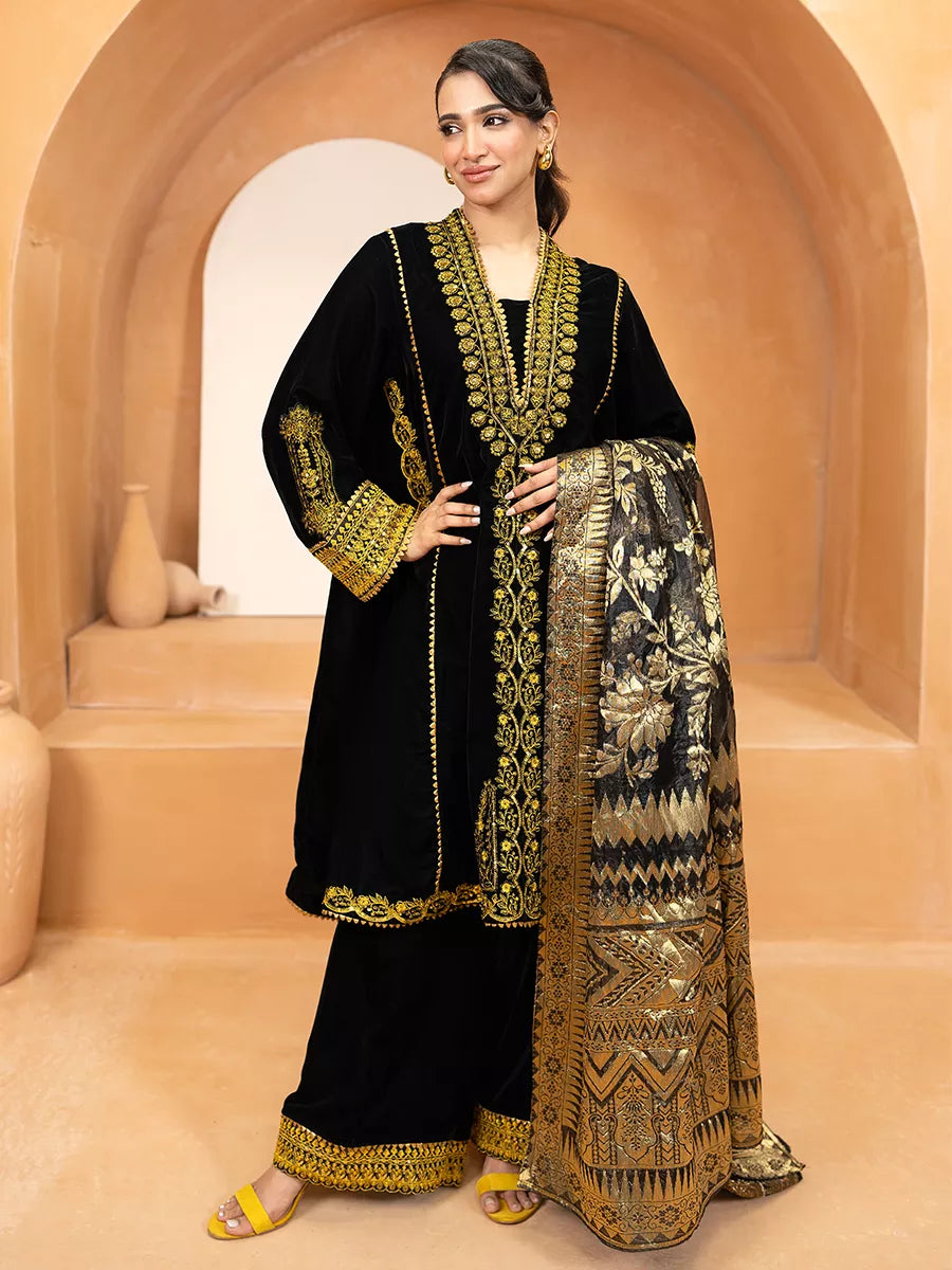 3PC Stitched Velvet Embroidered Suit (WP7L3PEF483)