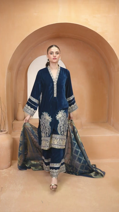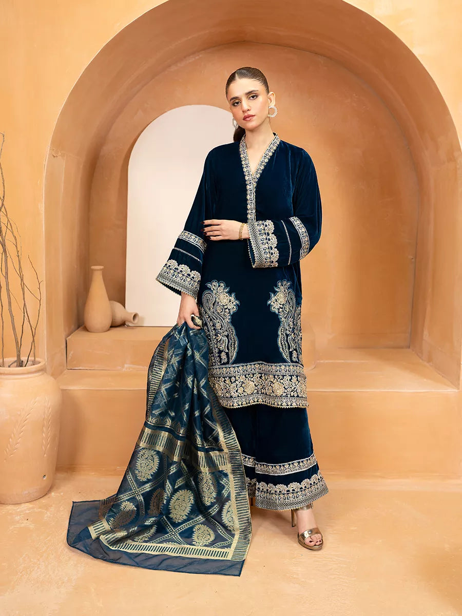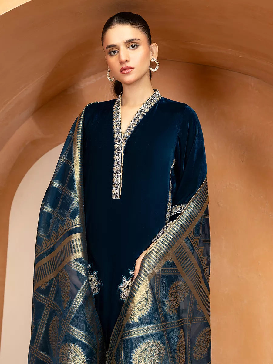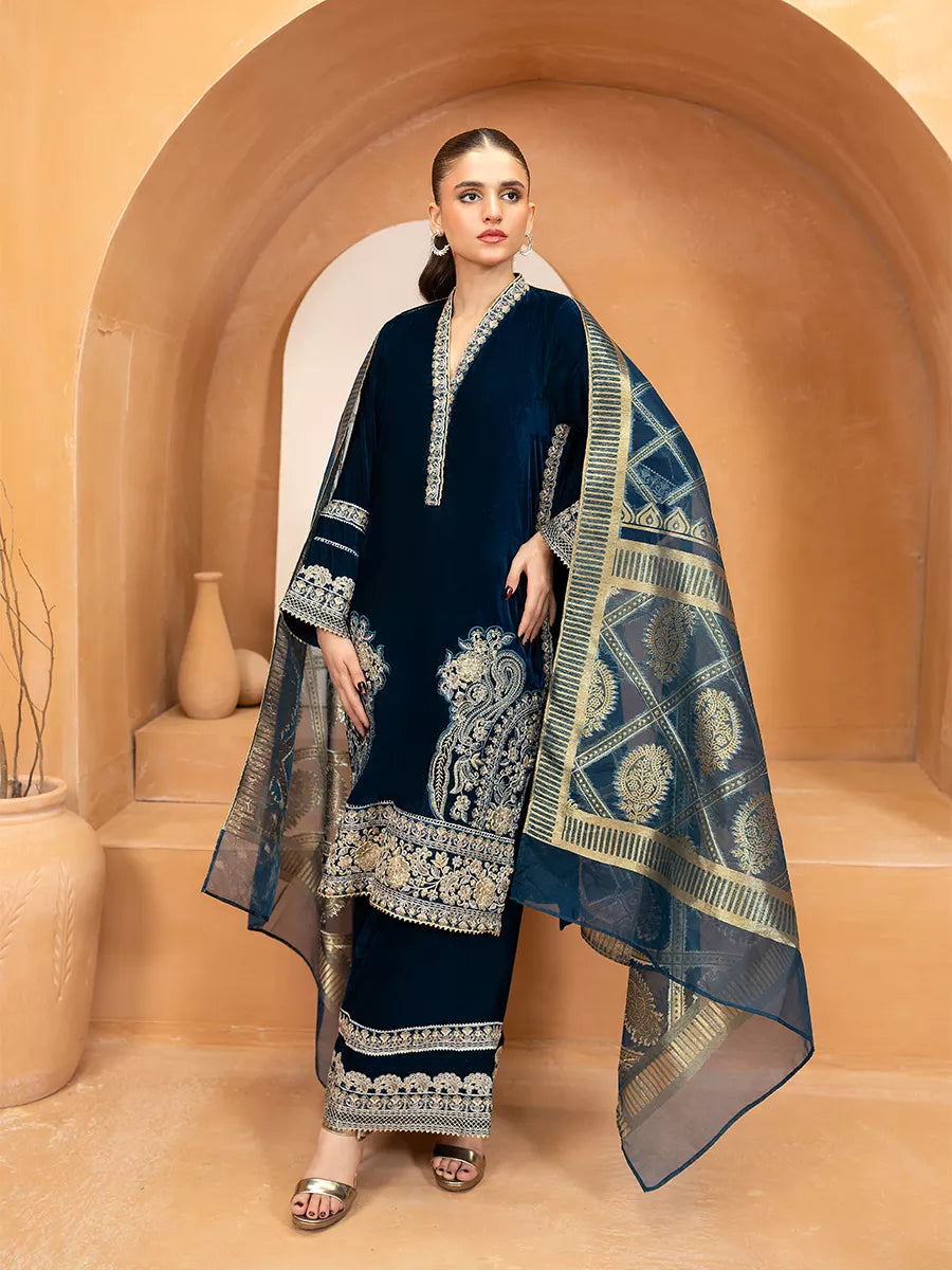 3PC Stitched Velvet Embroidered Suit (WP7L3PEF484)