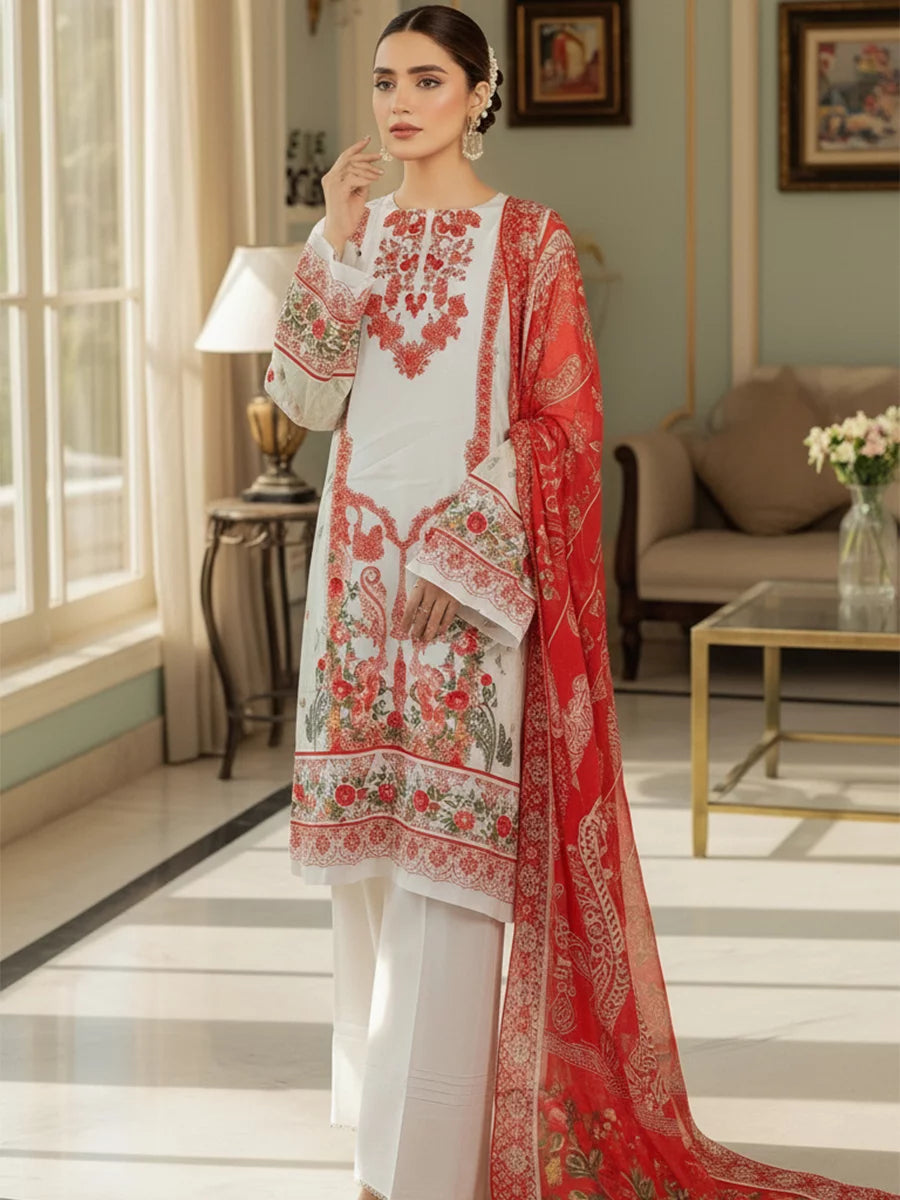 3PC Unstitched Cambric Printed Suit (SSW6U3P822)