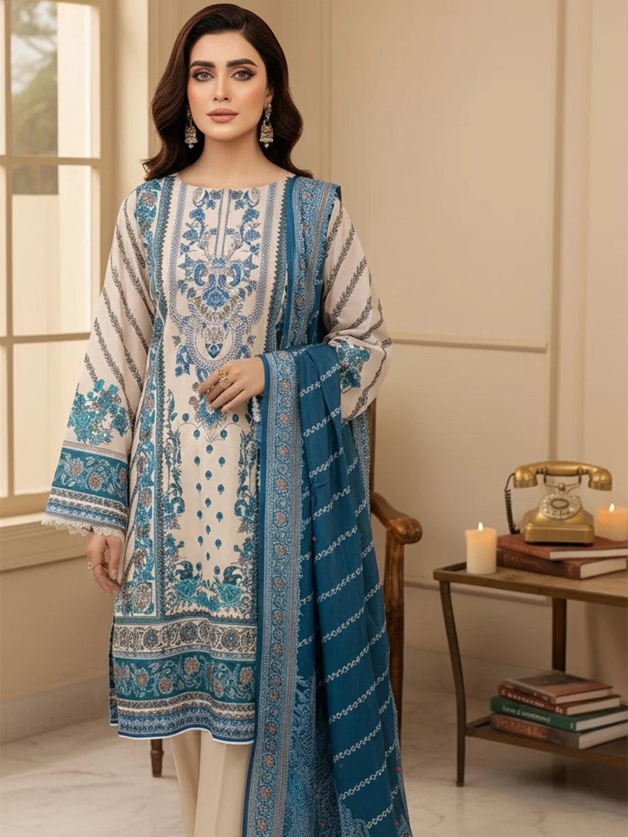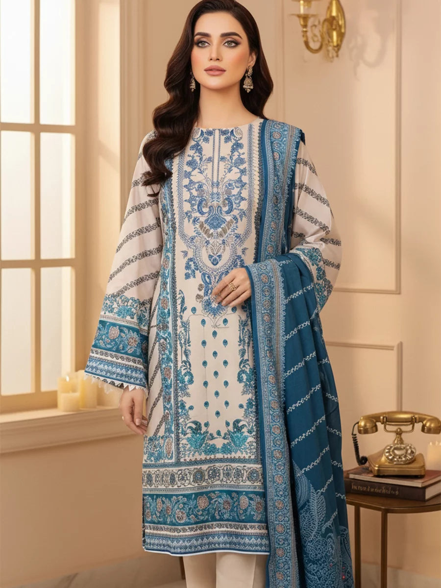 3PC Unstitched Cambric Printed Suit (SSW6U3P823)