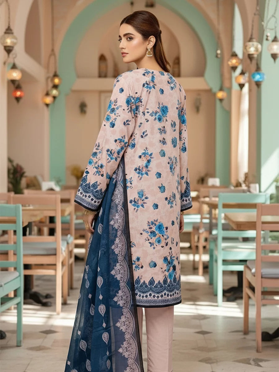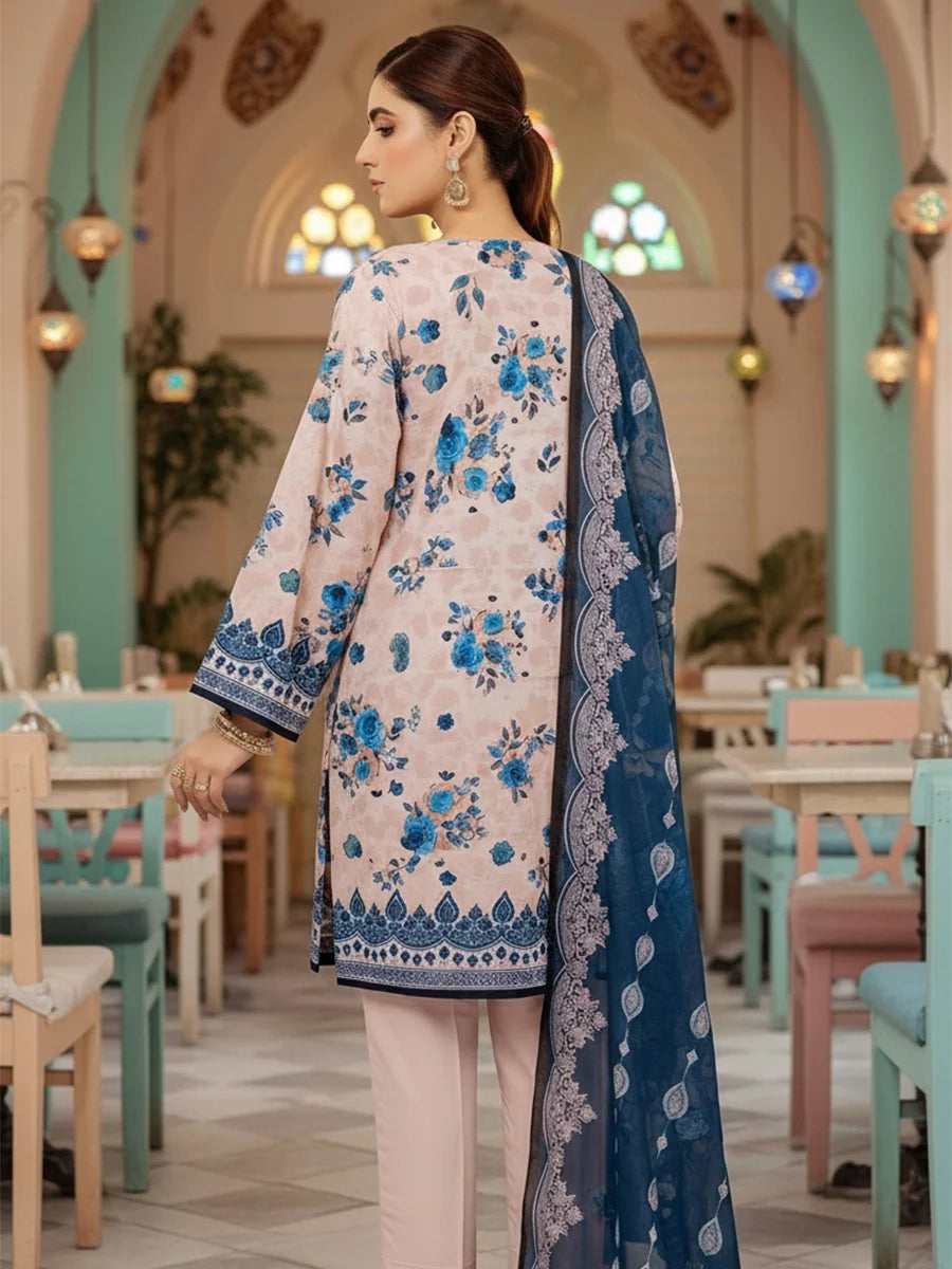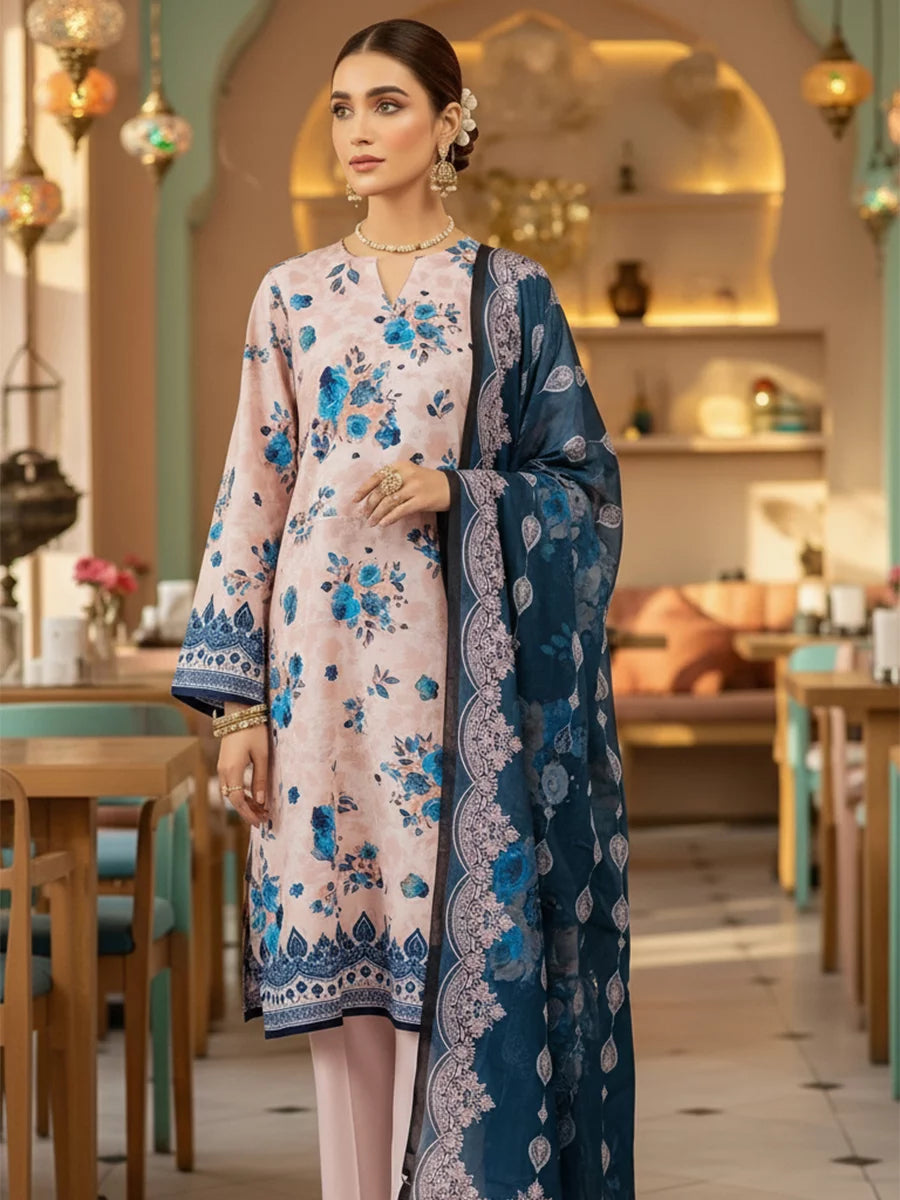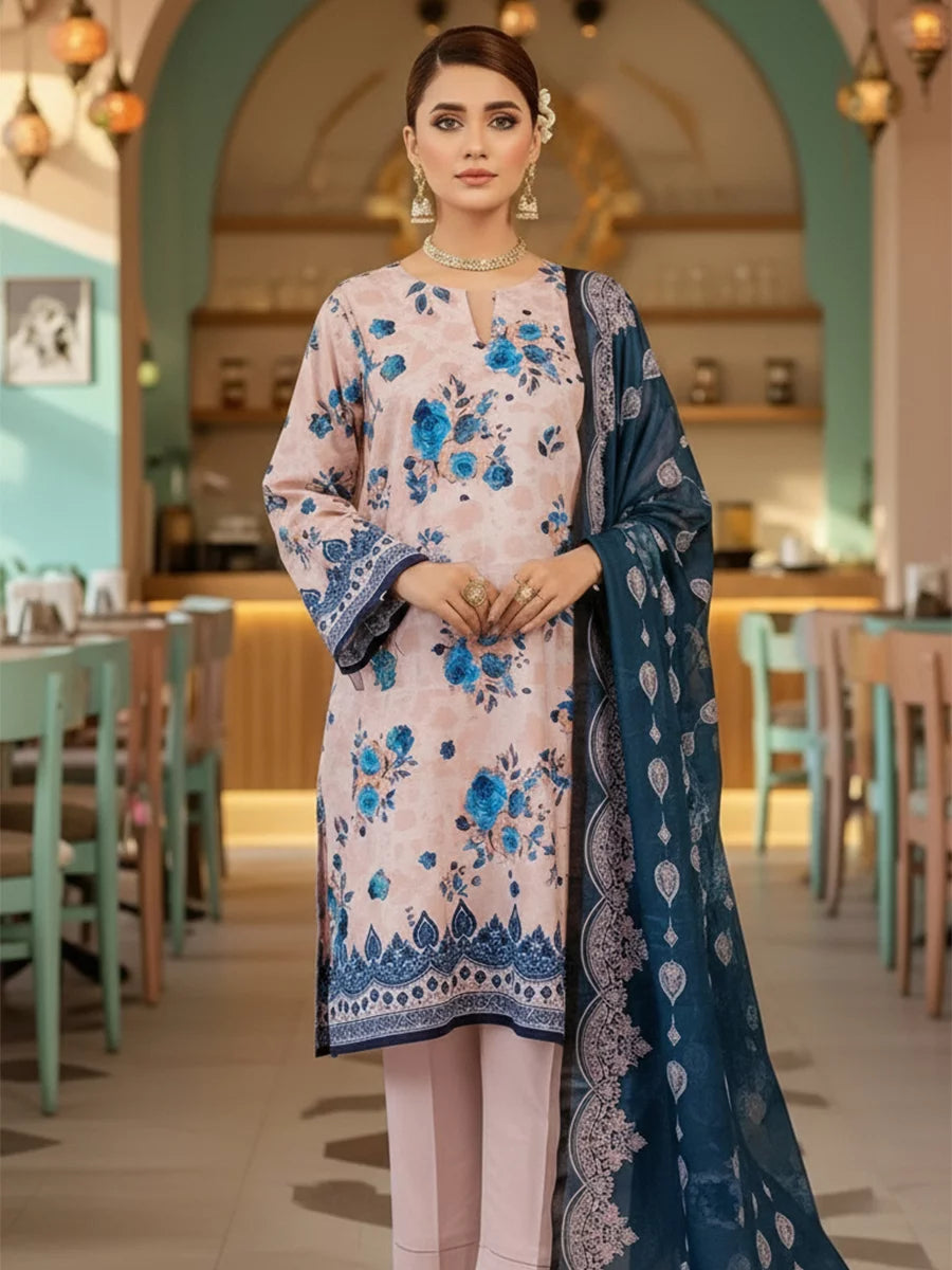 Elevate your everyday style with this elegant 3PC suit, featuring a cambric printed shirt, a lawn printed dupatta, and a dyed cambric trouser. Designed for comfort and sophistication, this outfit blends soft fabric with vibrant prints