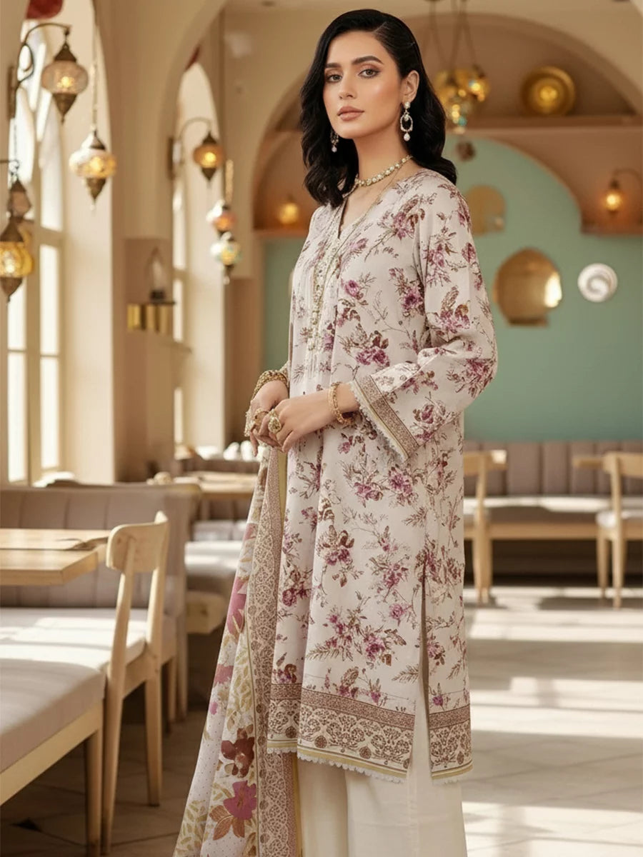 Elevate your everyday style with this elegant 3PC suit, featuring a cambric printed shirt, a lawn printed dupatta, and a dyed cambric trouser. Designed for comfort and sophistication, this outfit blends soft fabric with vibrant prints
