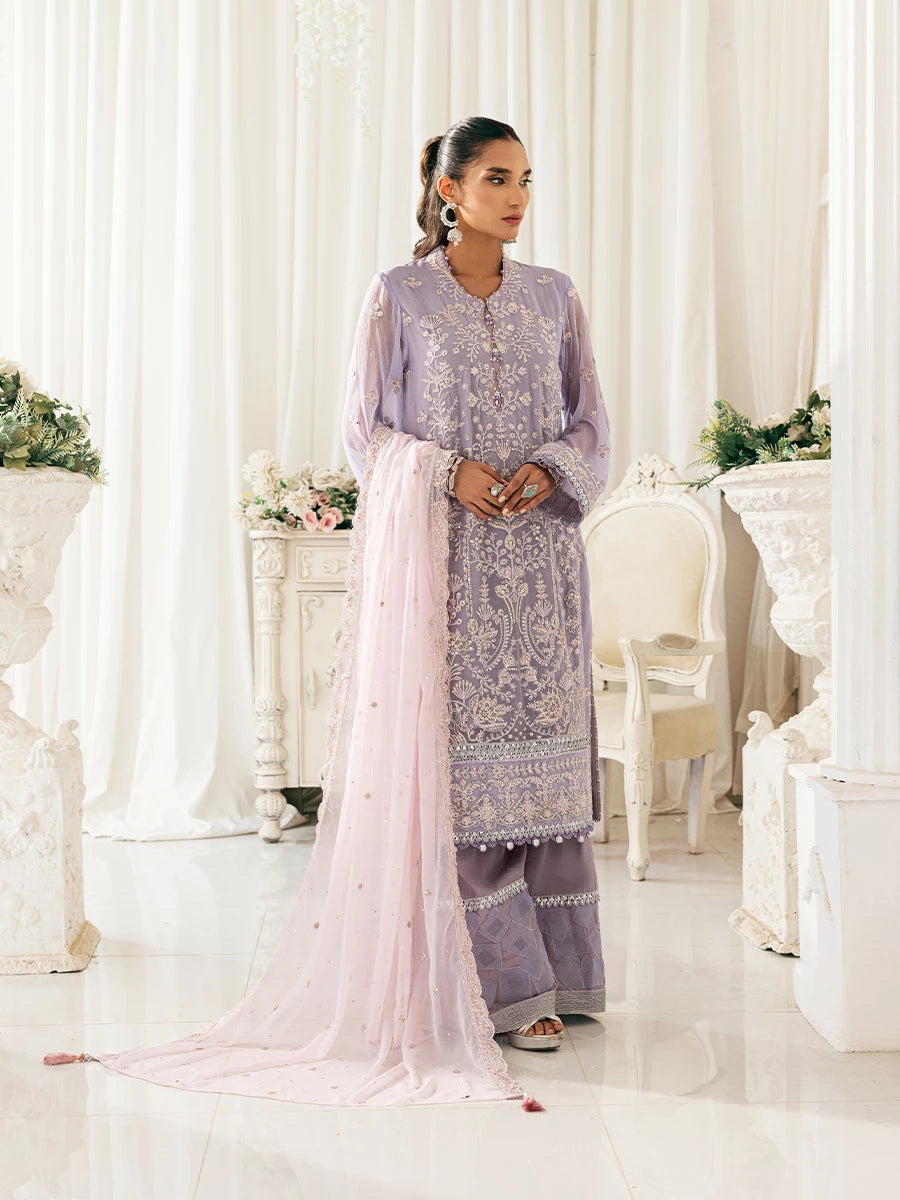 Beautify your wardrobe with our 3PC unstitched chiffon embroidered suit, designed for elegance, comfort, and timeless charm.