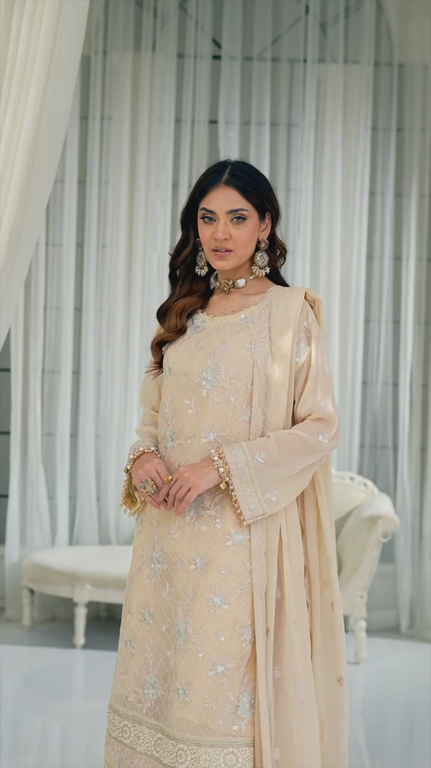 Beautify your wardrobe with our 3PC unstitched chiffon embroidered suit, designed for elegance, comfort, and timeless charm.