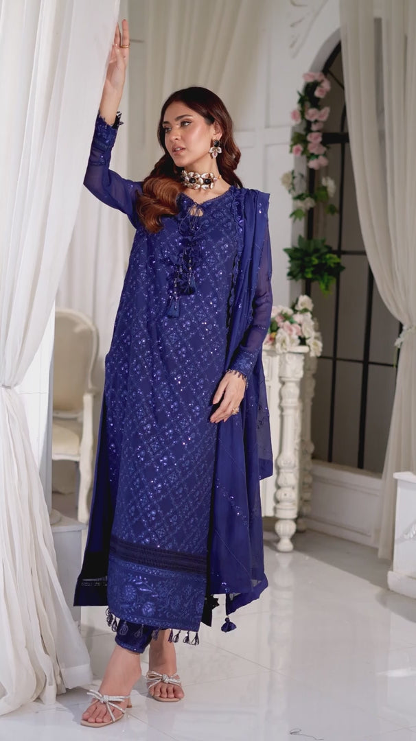 Beautify your wardrobe with our 3PC unstitched chiffon embroidered suit, designed for elegance, comfort, and timeless charm.