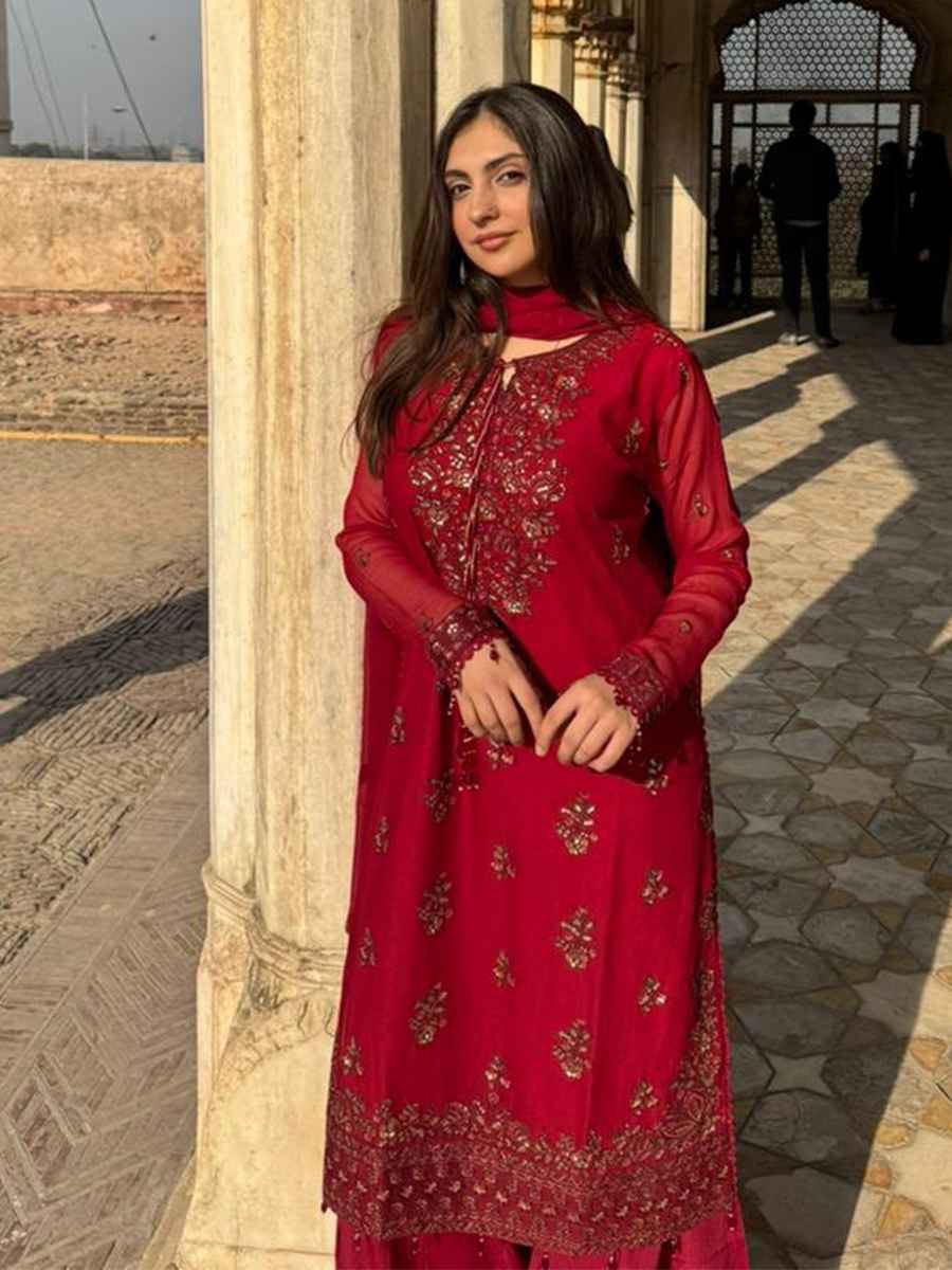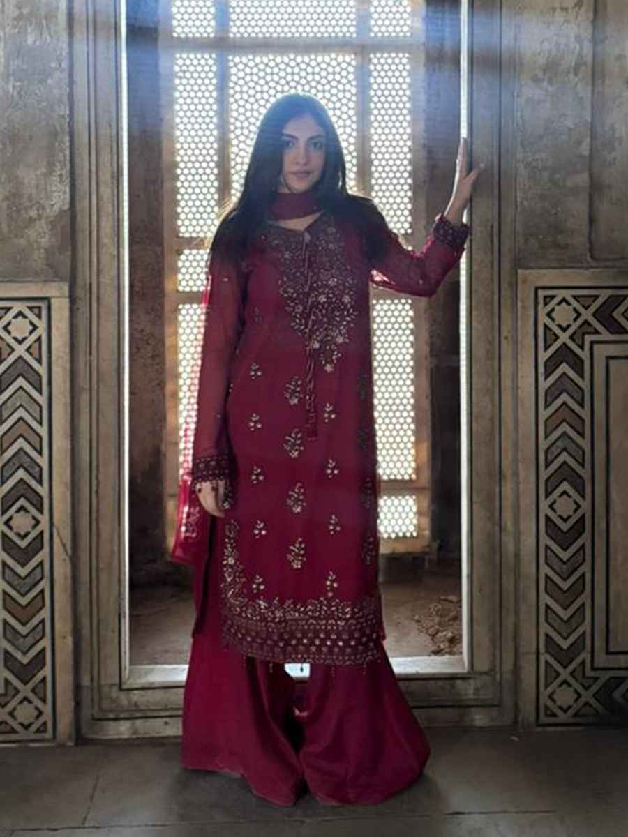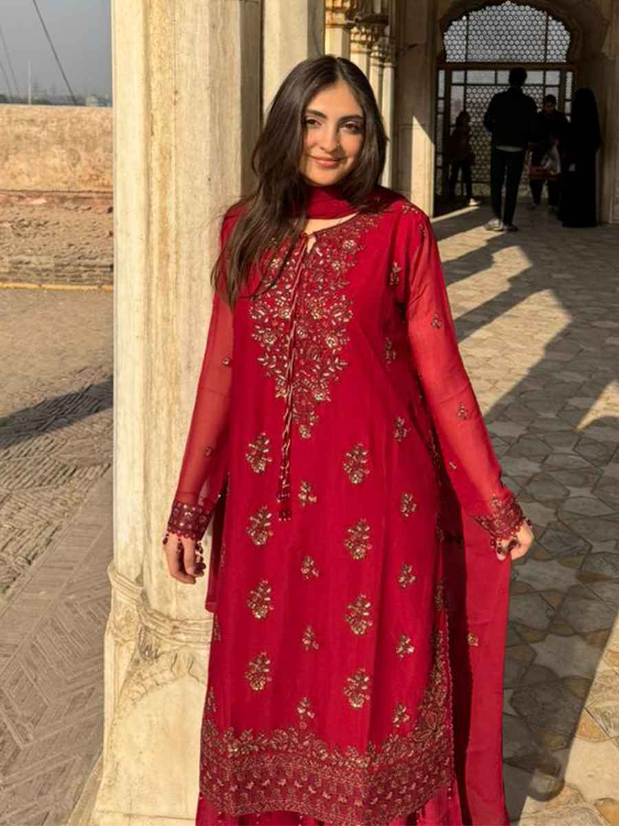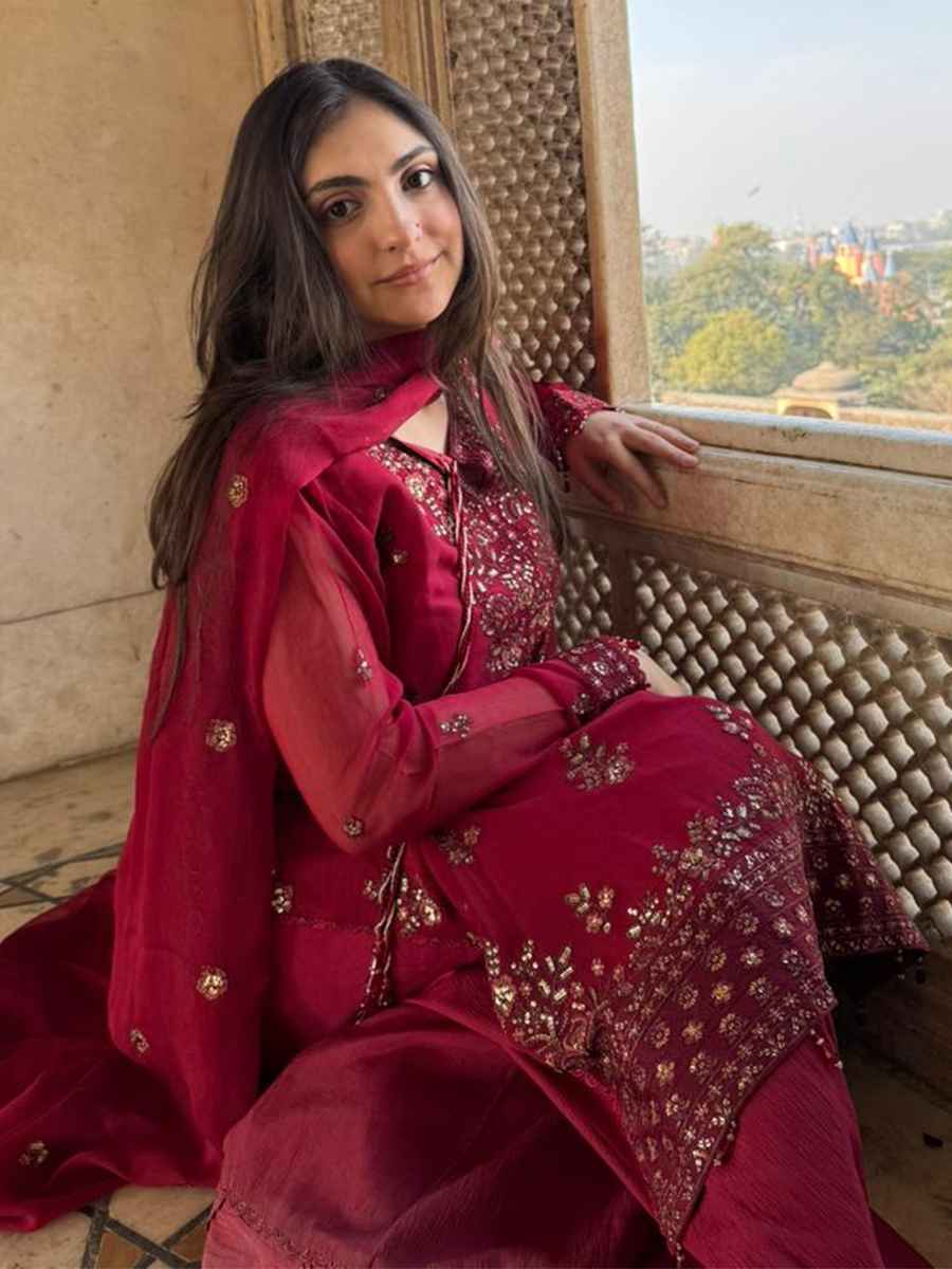 Note: Extra tassels, laces and Boxes for shoot purpose wouldn't be included in Unstitched Dresses, They are only for Model Shoot Purpose.