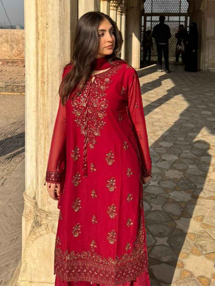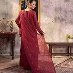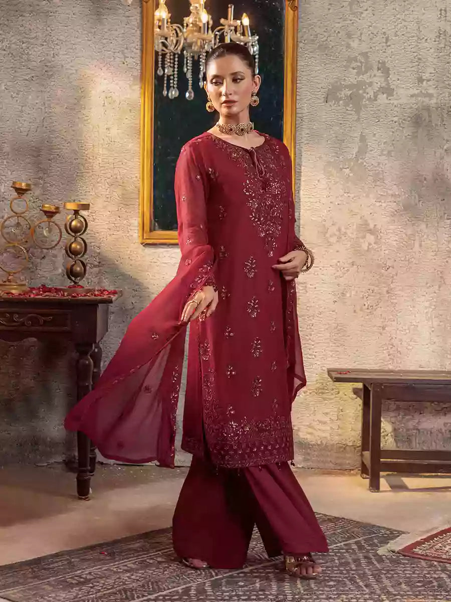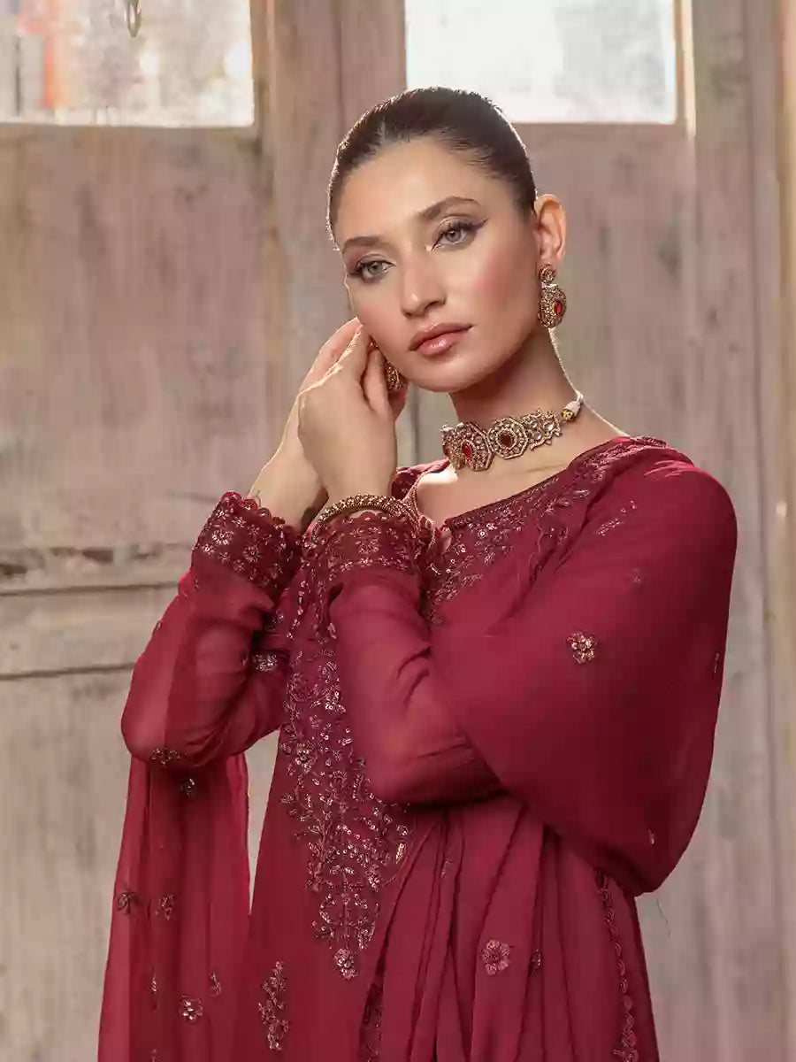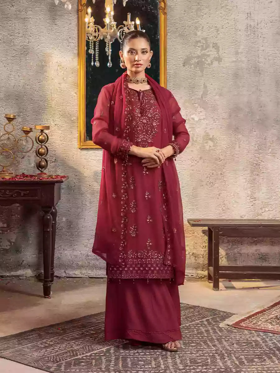 Beautify your wardrobe with this signature 3PC unstitched chiffon embroidered suit — a flawless fusion of soft textures, intricate detailing, and graceful charm. This ensemble promises to add a timeless essence to your wardrobe, making every occasion effortlessly memorable.