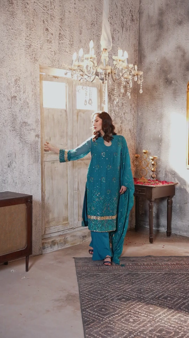 Beautify your wardrobe with this signature 3PC unstitched chiffon embroidered suit — a flawless fusion of soft textures, intricate detailing, and graceful charm. This ensemble promises to add a timeless essence to your wardrobe, making every occasion effortlessly memorable.
