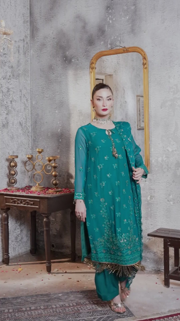 Beautify your wardrobe with this signature 3PC unstitched chiffon embroidered suit — a flawless fusion of soft textures, intricate detailing, and graceful charm. This ensemble promises to add a timeless essence to your wardrobe, making every occasion effortlessly memorable.