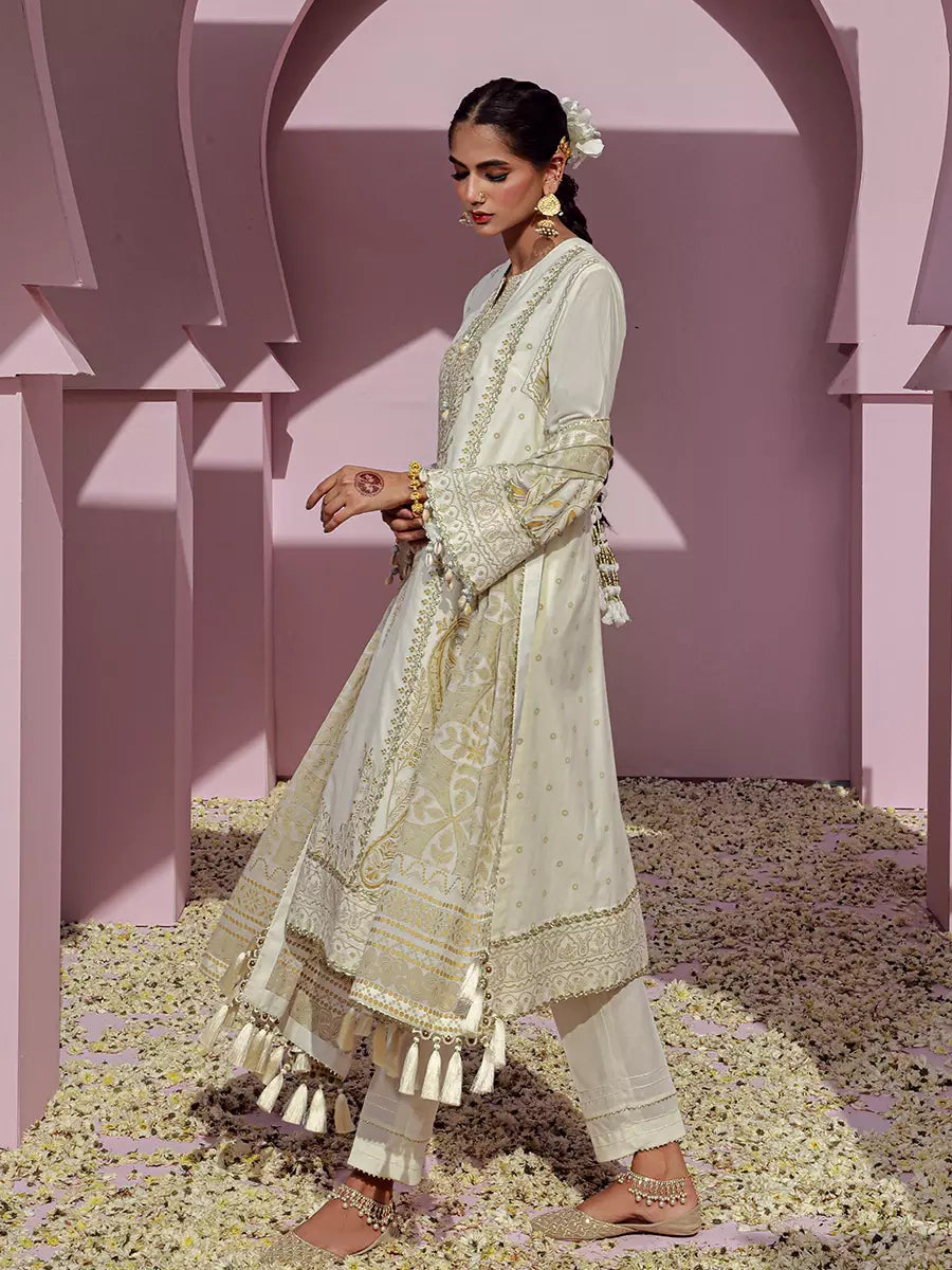 Introducing "Noor e Khaas" Collection: Elevate Your Eid Elegance This collection represent a palette adorned solely in shades of pristine white, exuding purity, serenity, and grace.