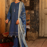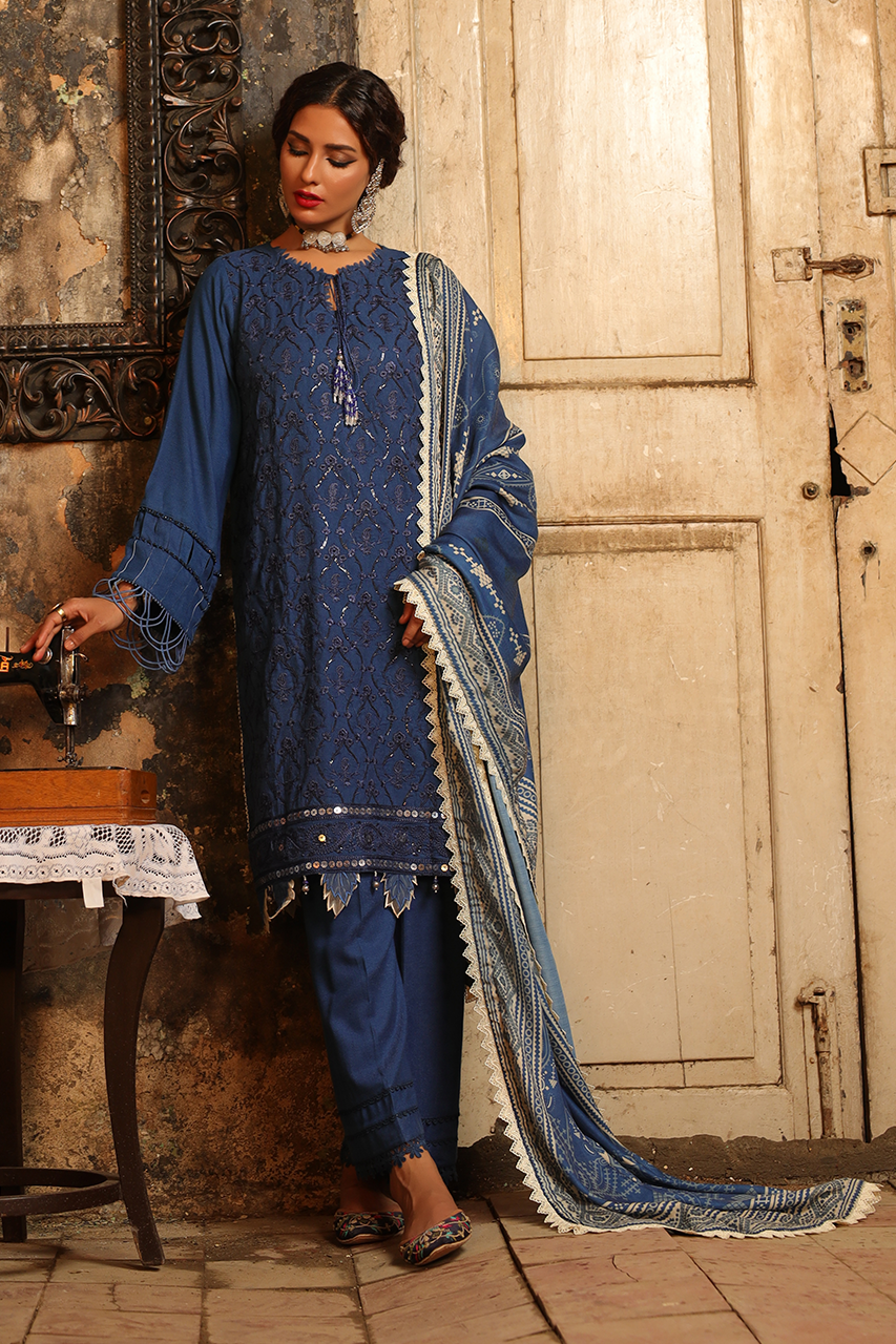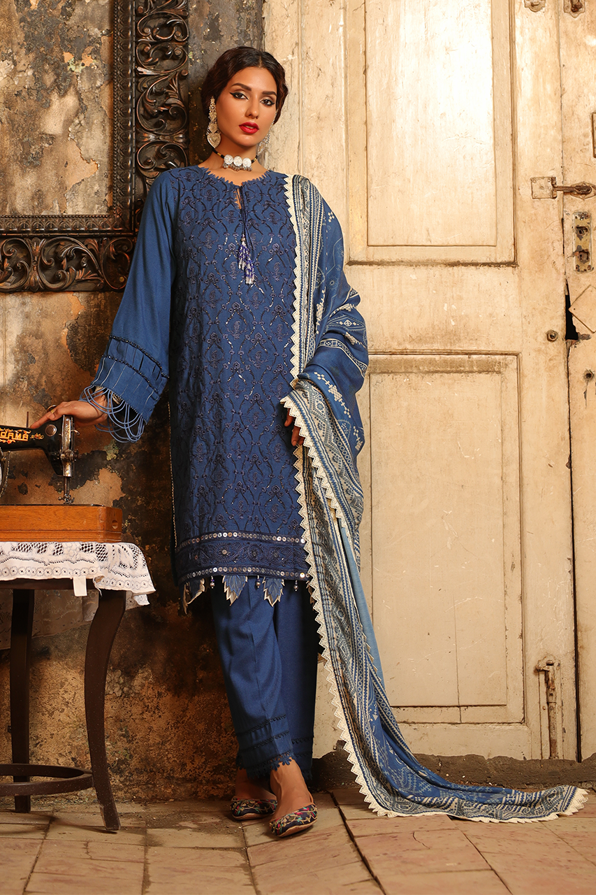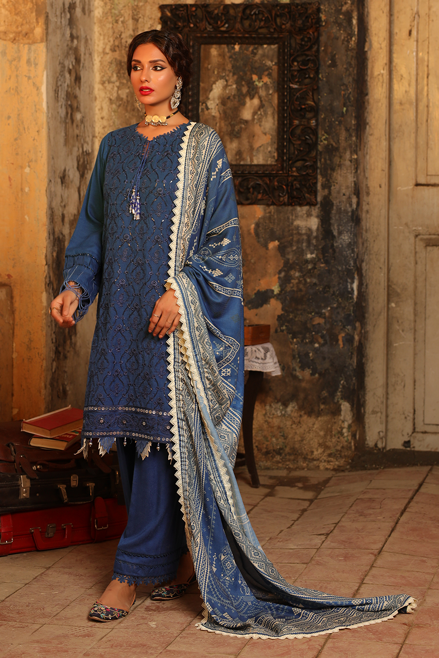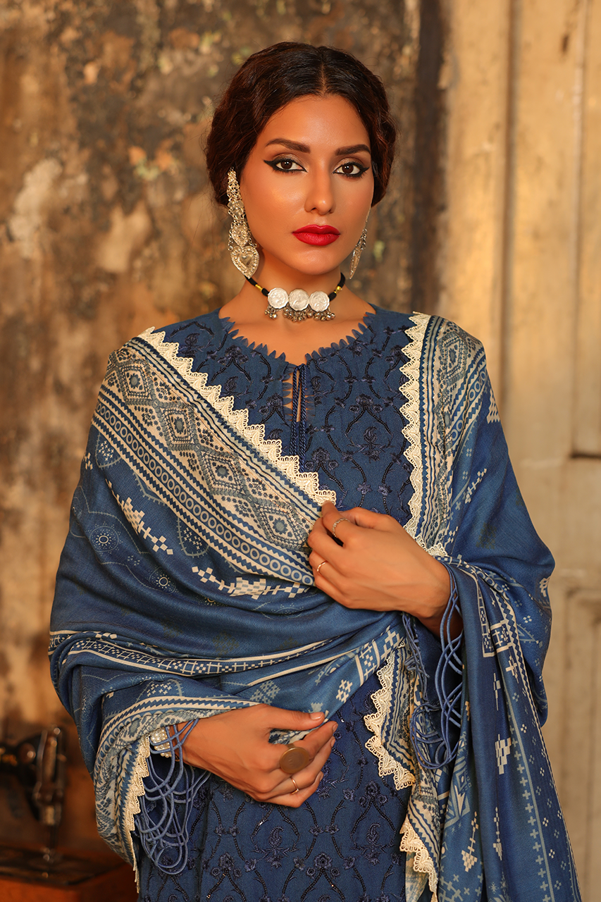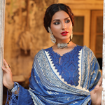 3PC Unstitched - Dyed Peach Leather Embroidered Shirt with Pashmina Printed Lurex Shawl