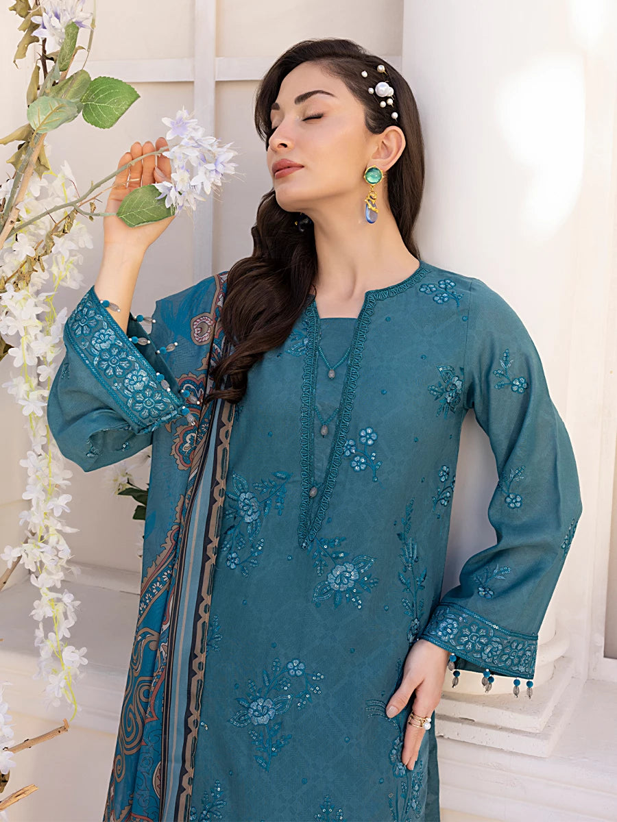 3PC Unstitched Embroidered Luxury Suit (P109)