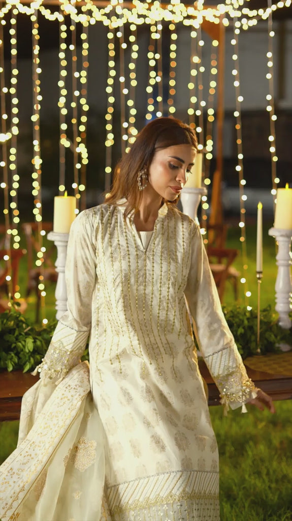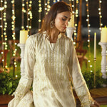 Immerse yourself in the captivating charm of Noor e Khaas, a collection that celebrates the timeless beauty of pristine white. Each piece embodies purity, and grace, bringing refinement perfect for your Eid celebrations.