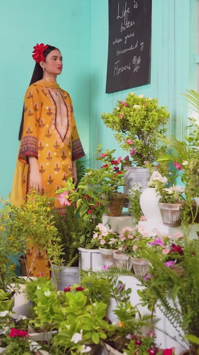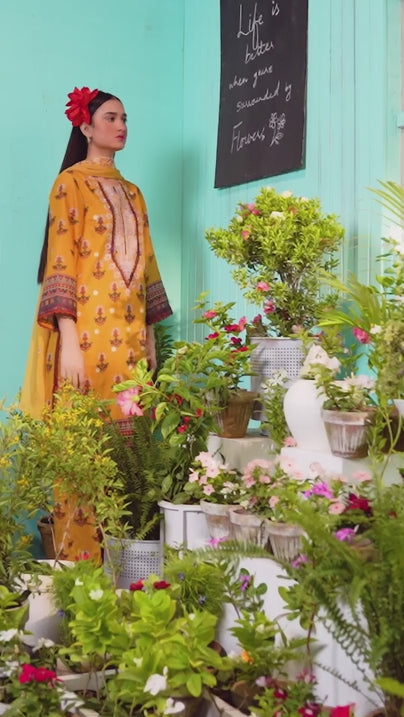 Discover the Izel collection by Salitex, featuring a stylish lawn printed embroidered shirt, a vibrant chiffon dyed embroidered dupatta, and a classic cambric dyed plain trouser.