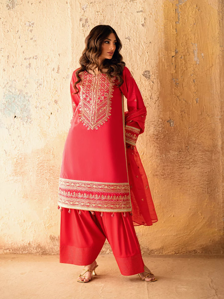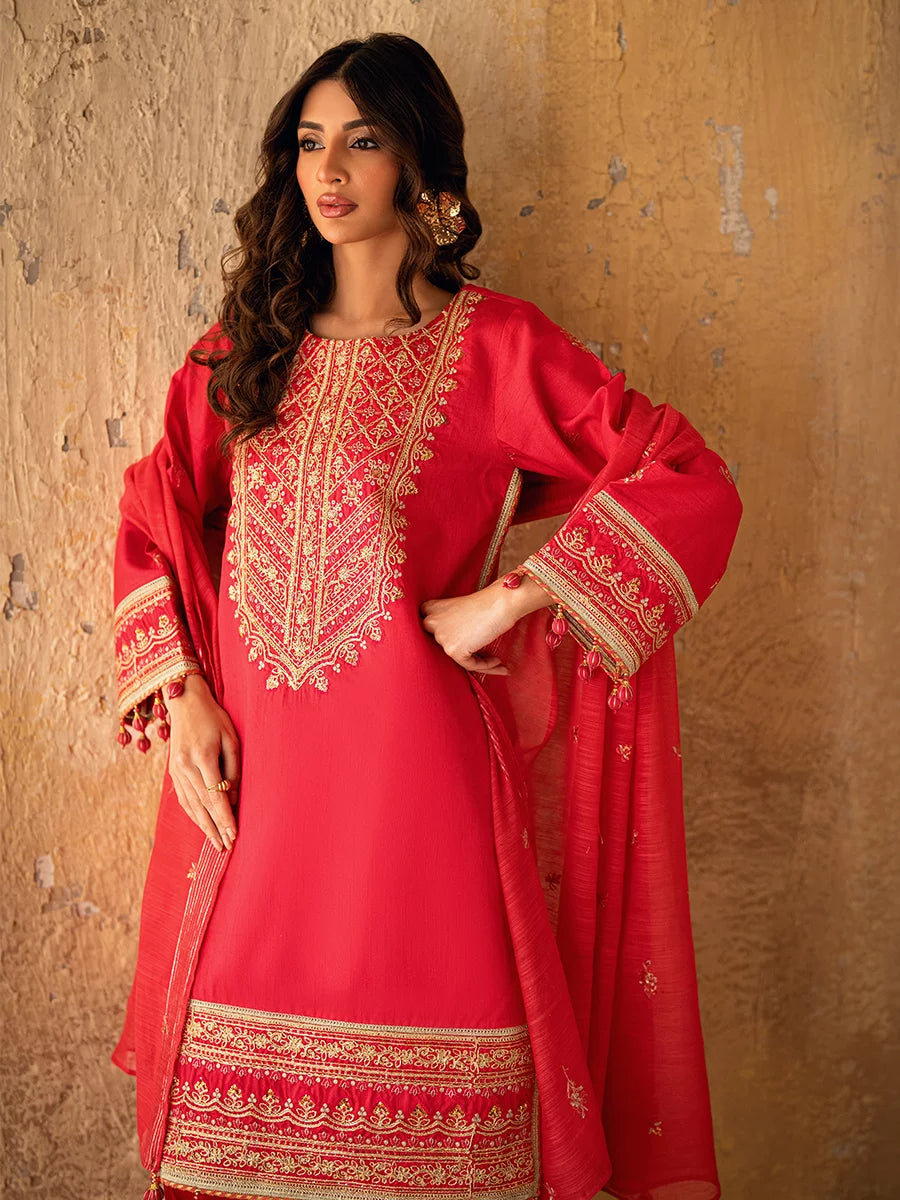 Celebrate every occasion in style with our 3PC unstitched festive embroidered suit. Designed on high-quality fabric with delicate embroidery, this ensemble brings a touch of tradition.