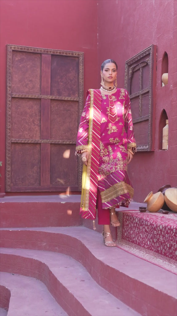 Note: Extra tassels, laces and Boxes for shoot purpose wouldn't be included in Unstitched Dresses, They are only for Model Shoot Purpose.