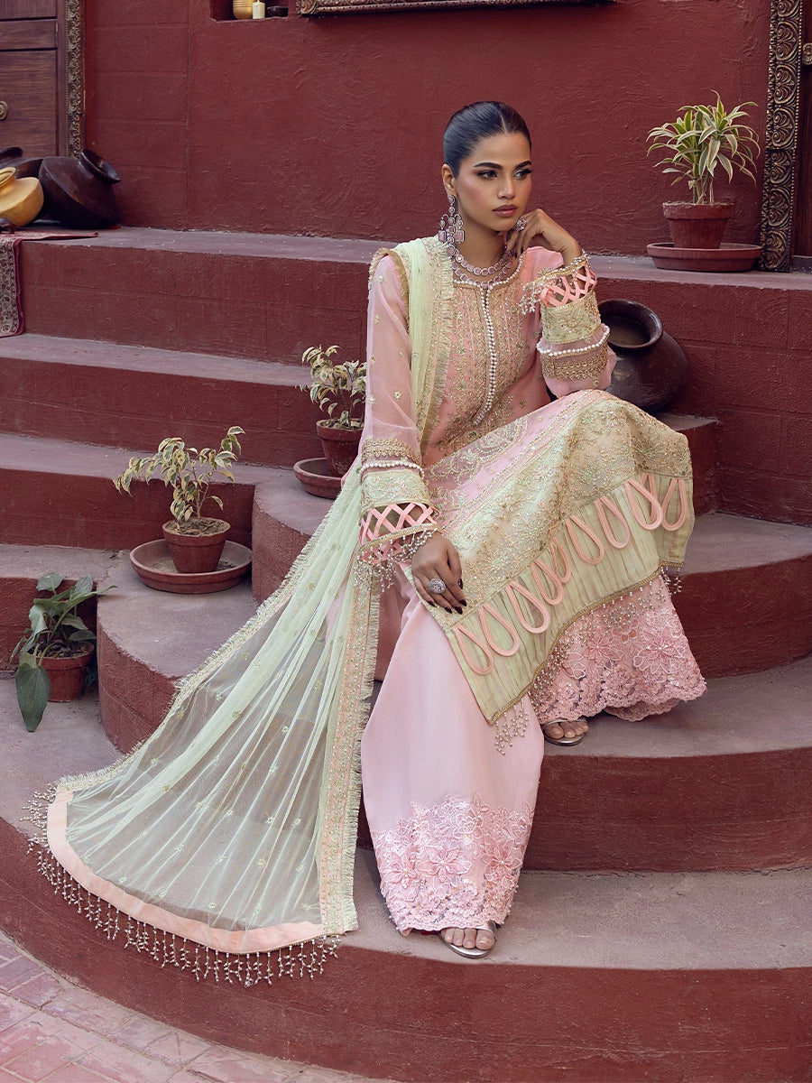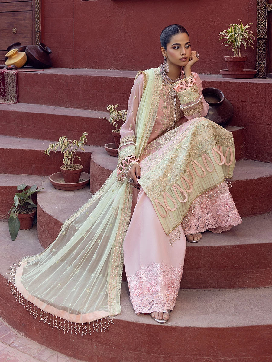 Note: Extra tassels, laces and Boxes for shoot purpose wouldn't be included in Unstitched Dresses, They are only for Model Shoot Purpose.