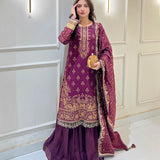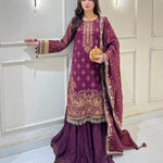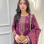 Celebrate tradition with our 3PC Unstitched Festive Embroidered Suit. Designed with meticulous embroidery on premium fabric, this outfit offers versatility and sophistication, making it an ideal choice for any special occasion. Create your signature style with grace and charm.