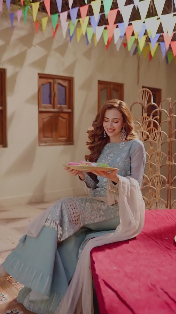 Note: Extra tassels, laces and Boxes for shoot purpose wouldn't be included in Unstitched Dresses, They are only for Model Shoot Purpose.