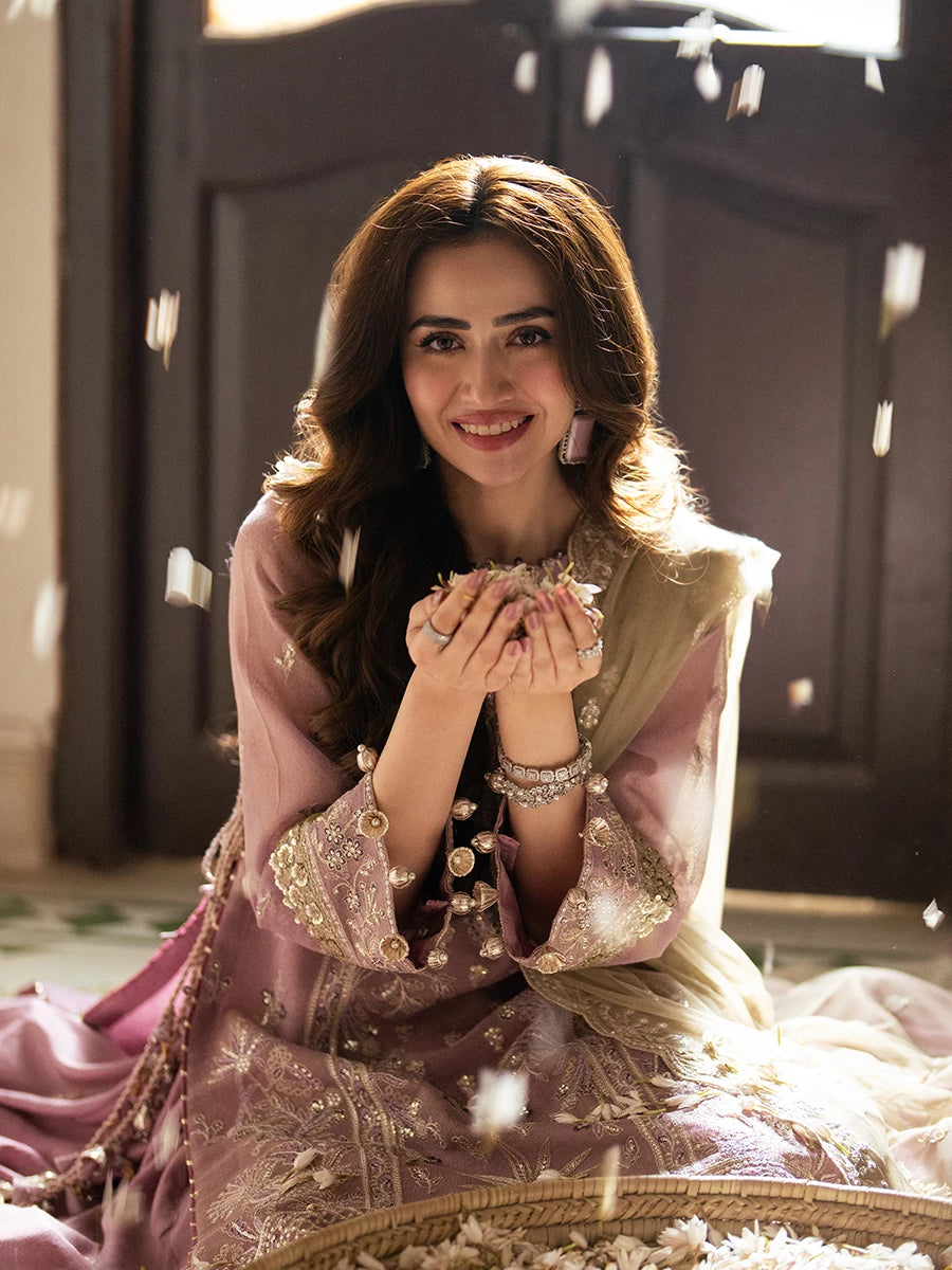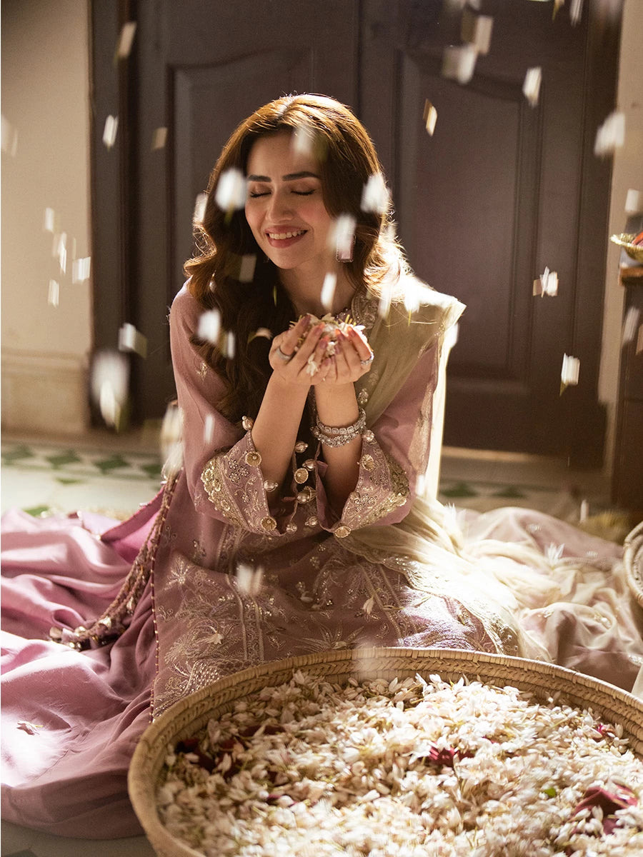 Note: Extra tassels, laces and Boxes for shoot purpose wouldn't be included in Unstitched Dresses, They are only for Model Shoot Purpose.