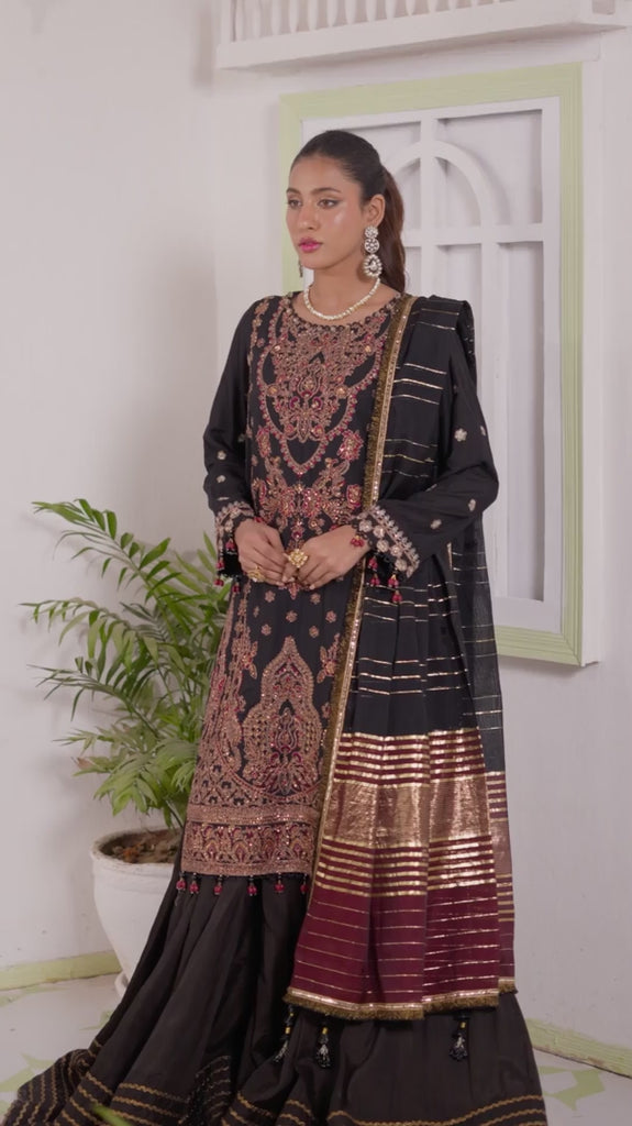 Note: Extra tassels, laces and Boxes for shoot purpose wouldn't be included in Unstitched Dresses, They are only for Model Shoot Purpose.