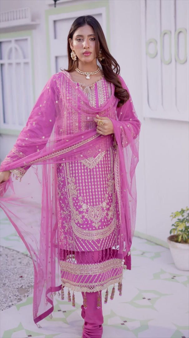 Note: Extra tassels, laces and Boxes for shoot purpose wouldn't be included in Unstitched Dresses, They are only for Model Shoot Purpose.