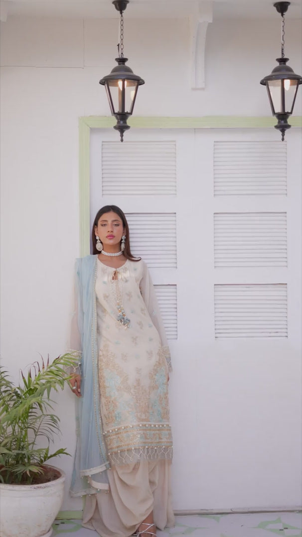 Note: Extra tassels, laces and Boxes for shoot purpose wouldn't be included in Unstitched Dresses, They are only for Model Shoot Purpose.