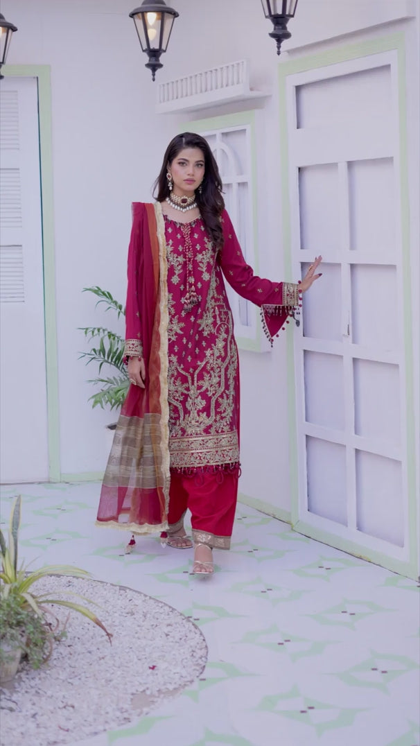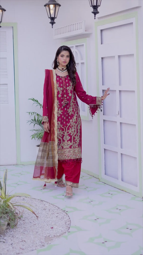3PC Unstitched Festive Embroidered Suit (NO008)