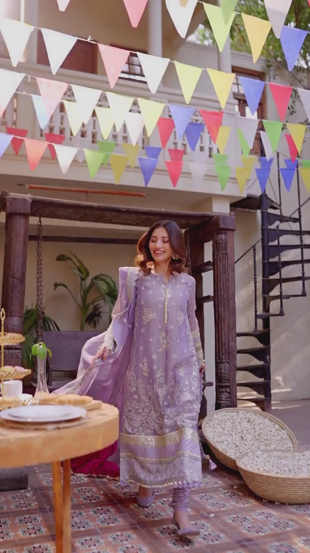 Note: Extra tassels, laces and Boxes for shoot purpose wouldn't be included in Unstitched Dresses, They are only for Model Shoot Purpose.
