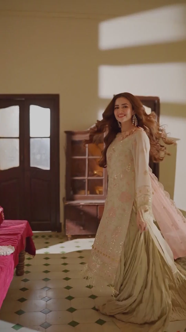 Note: Extra tassels, laces and Boxes for shoot purpose wouldn't be included in Unstitched Dresses, They are only for Model Shoot Purpose.